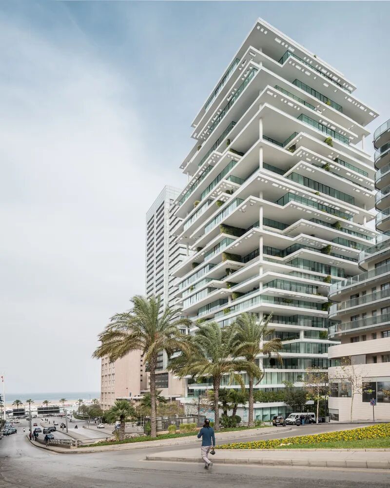 黎巴嫩层叠摩天大楼住宅由瑞士建筑Herzog&deMeuron设计,约119米高,可以俯瞰贝鲁特的码头。交错的地板和后退玻璃窗在塔楼营造出非常多个大型宽敞露台。