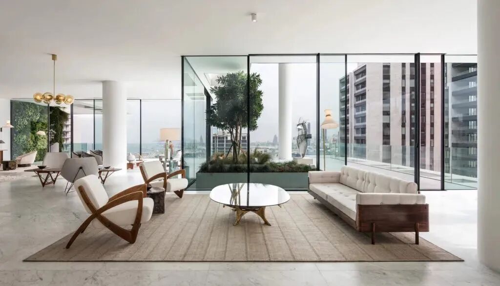 种植在室内外的茂盛植物,是邻近绿荫大道的垂直延伸。