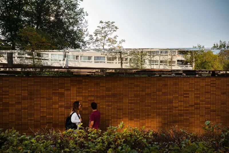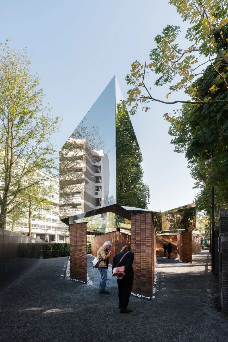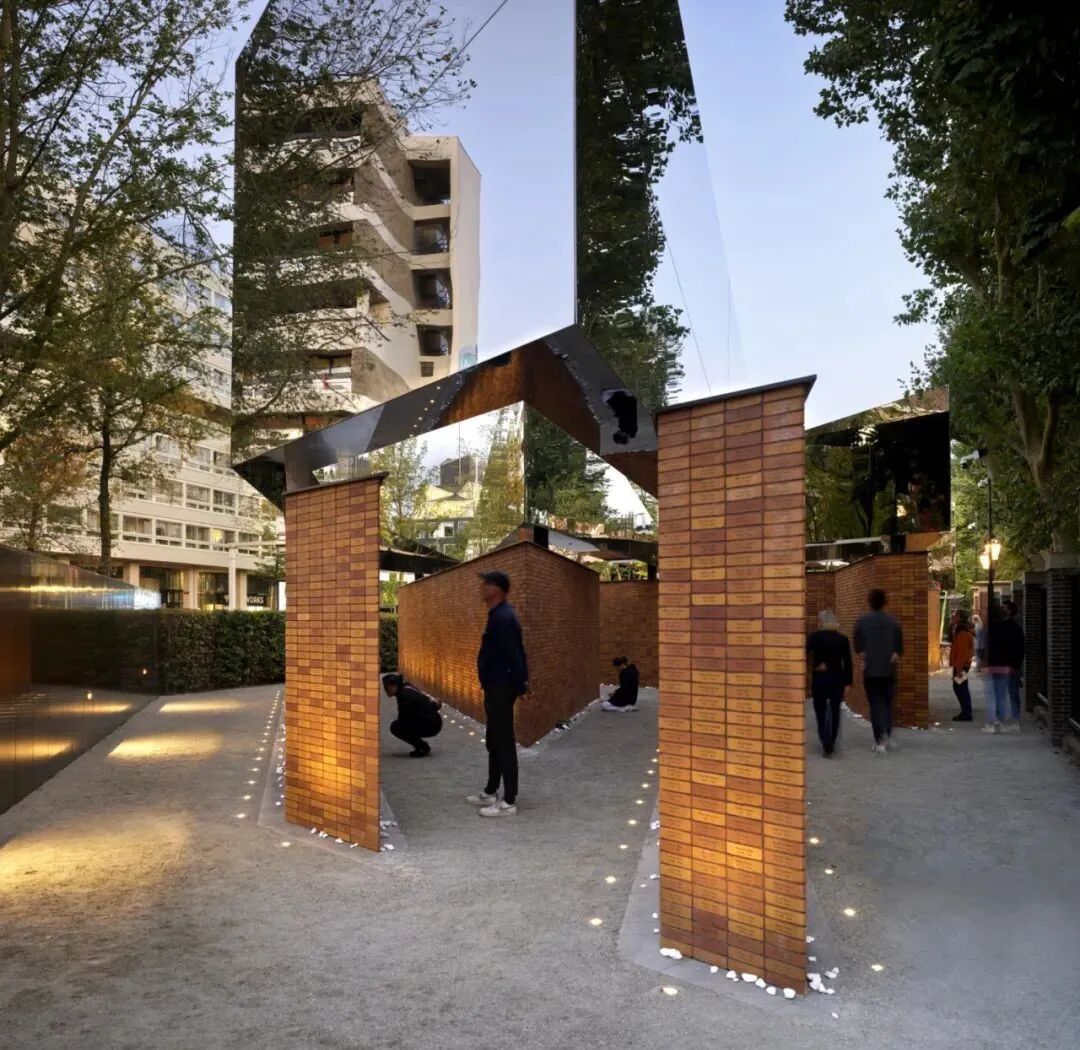 砖是荷兰乃至西欧城市中最为常见的材料,其与镜面不锈钢组成的希伯来语字母相结合,体现出荷兰历史与当下之间的联系。