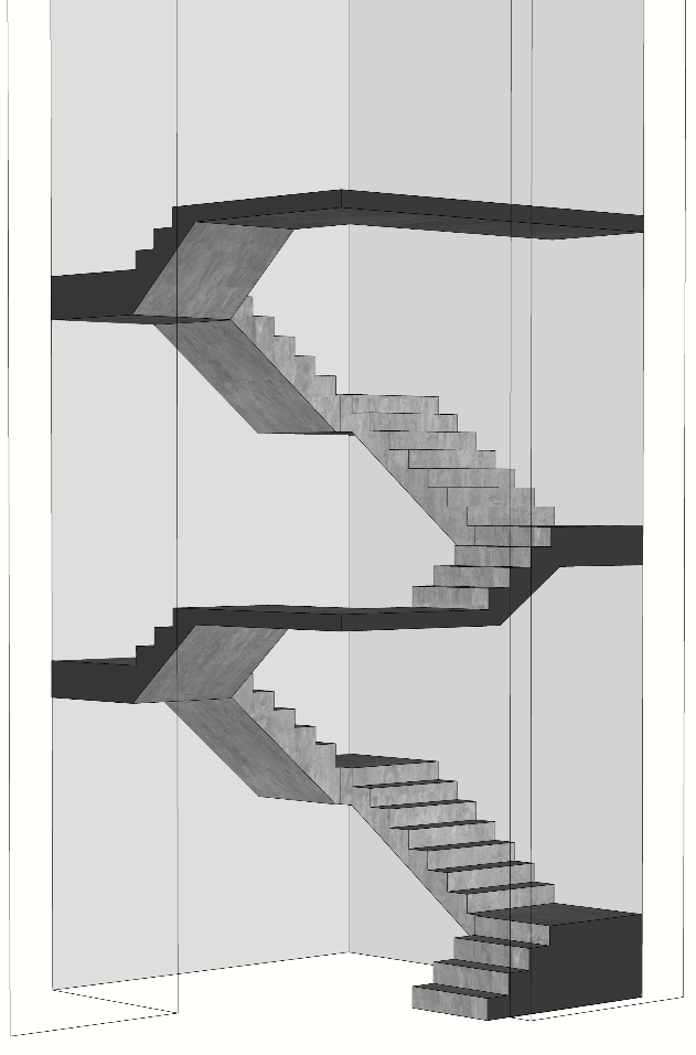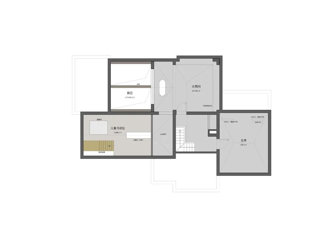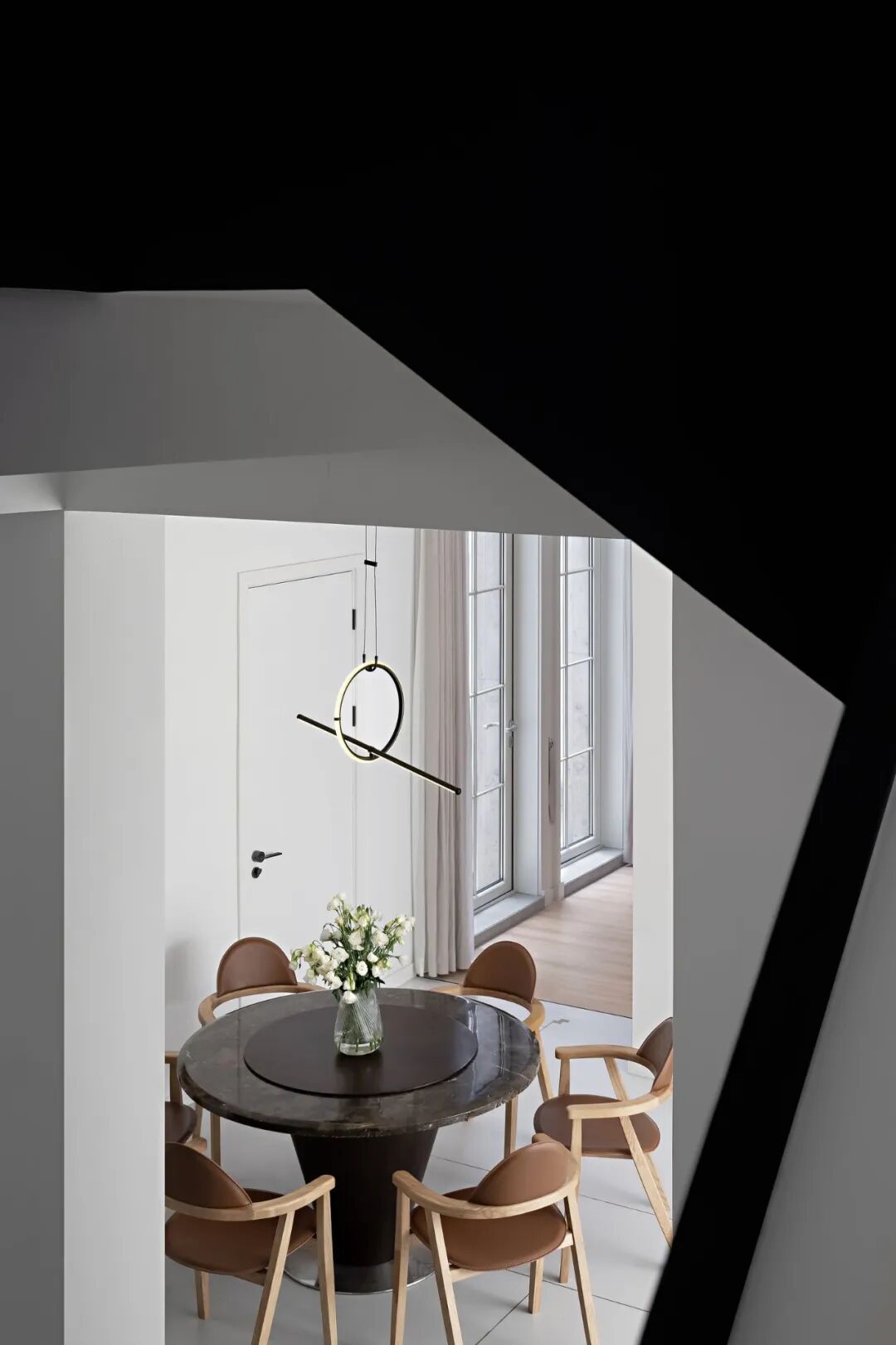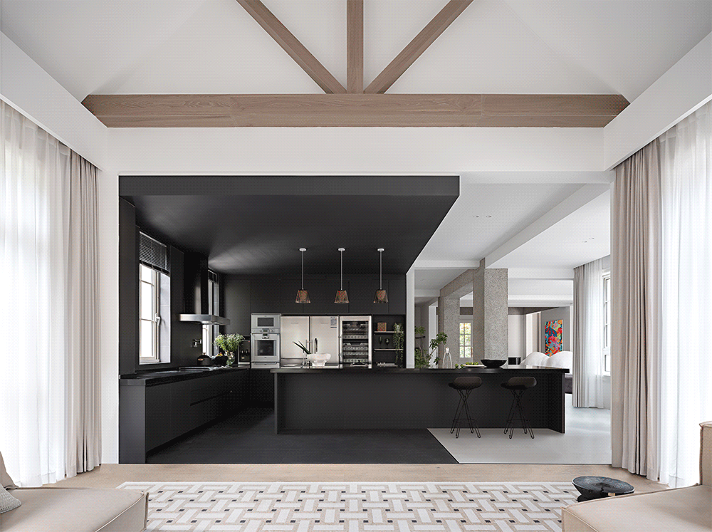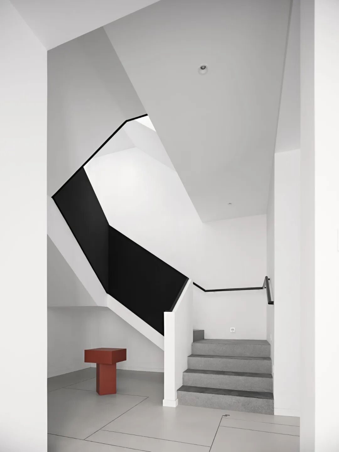 无论在黑白灰转折分明的楼梯区域,还是在灰白盒子彼此穿插的西厨空间,强烈的虚实对比、前后层次以及这种让人感觉舒适的形式,都是通过对比例的严格控制产生的。