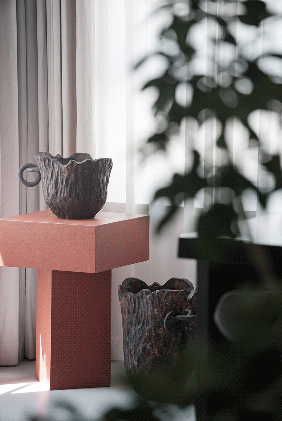 「色彩需黑白的衬托才更明艳,精致在粗糙背景下才显细节。」借助对比设计,净白目及清静、肌理触之透气。