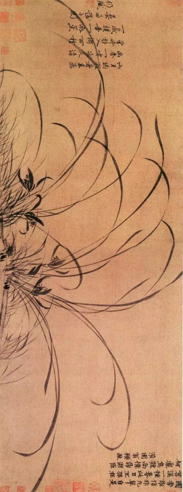 宋亡之后,一个叫郑所南的文人感叹国家灭亡,就犹如植物失去了根一样,他画的兰花都不画根,也不画土,代表他失去国家的心情。
