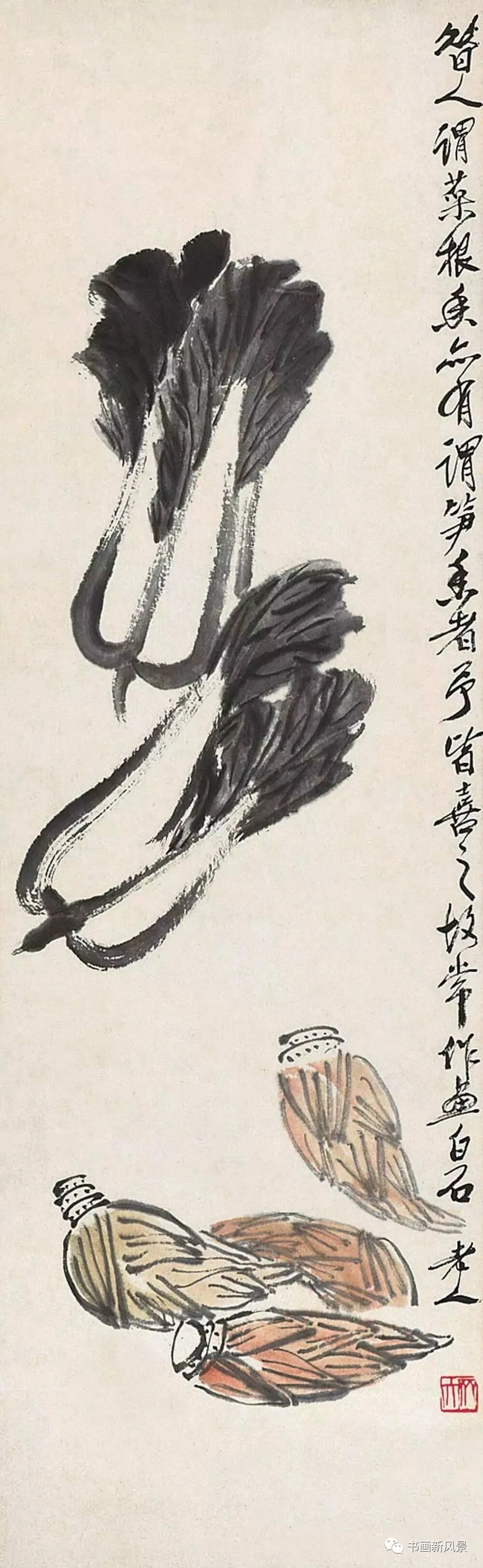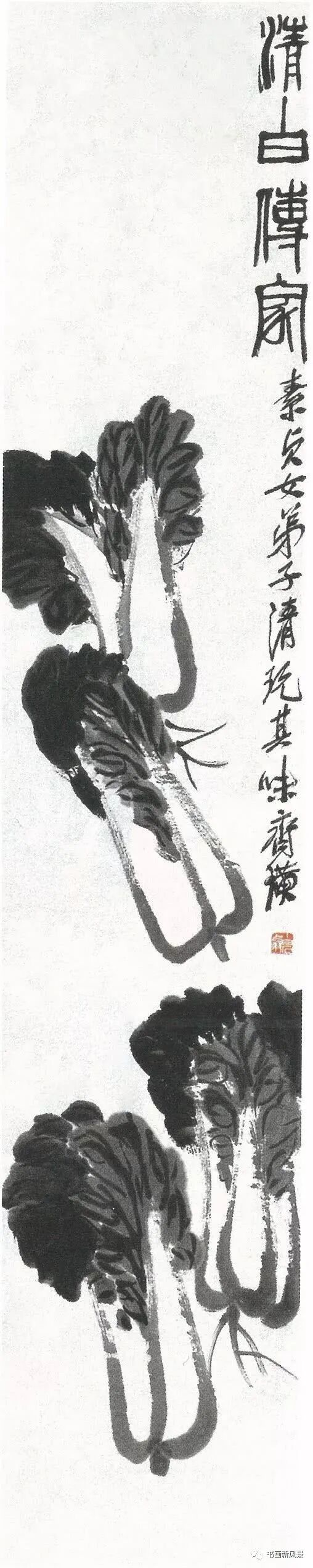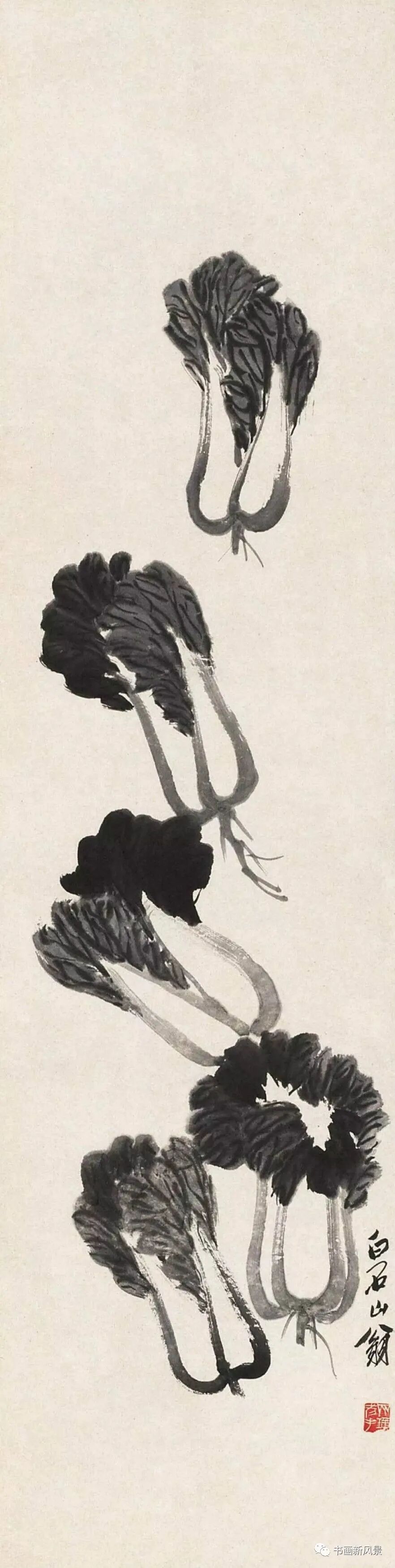 最新文章2023-09-06 立冬,看看中国美术馆收藏的齐白石大白菜! 齐白石 清白传家 中国美术馆藏 白菜,谐音“百财”,寓意财源滚滚,同时它的菜叶是青色,菜帮为白色,象征清清白白,故成为文人画家们喜欢表现的一个题材。 齐白石 清白家风 中国美术馆藏 白石老人一生喜画白菜,并且非常愿意向大家告白他的农家身份,他曾在《白菜》上题诗句:“不独老萍知此味,先人三代咬其根。”又题:“牡丹为花之王,荔枝为果之先,独不论白菜为菜之王,何也?”可见,在齐白石眼里,白菜的地位非同一般,画家是将白菜视为“菜王”看待的。 齐白石 到头清白 中国美术馆藏 齐白石笔下的白菜特别的鲜活,处处都透露出旺盛的生命活力和浓郁的生活气息。老人用他那简练的笔墨,诙谐有趣的画面语言,为我们展现了一幅幅饱含别样情思的生动图画。可以说,把白菜画出了名,是从齐白石这里开始的。。。 齐白石 菜笋香 中国美术馆藏 齐白石 白菜竹笋山菌 中国美术馆藏 齐白石 清白传家 中国美术馆藏 齐白石 白菜萝卜 中国美术馆藏 齐白石 蔬笋清香 中国美术馆藏 齐白石 白菜 中国美术馆藏 齐白石 白菜和小辣椒 中央美术学院藏 齐白石 清白传家 清华大学美术学院藏 齐白石 白菜蟋蟀 西安美术学院藏 齐白石 白菜小鸡 首都博物馆藏 齐白石 白菜蚂蚱 天津艺术博物馆藏 齐白石 白菜萝卜 辽宁省博物馆藏 齐白石《花鸟蔬果杂画册》中的白菜辣椒 题识:牡丹为花之王,荔枝为果之先,独不论白菜为菜之王,何也? 本文来自微信公众号“书画新风景”(ID:shuhuaxinfengjing)。大作社经授权转载,该文观点仅代表作者本人,大作社平台仅提供信息存储空间服务。 TAGS: 白菜美术菜馆藏齐白石 相关文章英赫日报 | 李宁 × 空…米兰时装周的异星来客,用结…米兰“MoLo”移动与物流…西班牙艺术家 Juan d…把小鸟画成美少女,她弃医从…这些鸡蛋包装不只是有趣,设…国产文具又炸了!晨光再造“…七点资讯 |《更衣人偶坠入…AlphaDraw筑绘通「…秦始皇的黑,是你不懂的黑。
