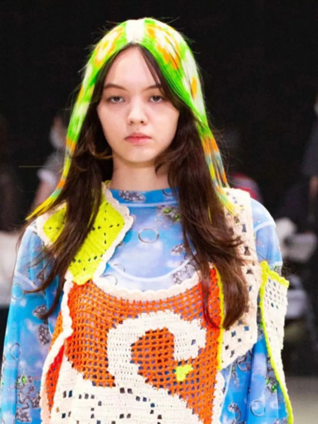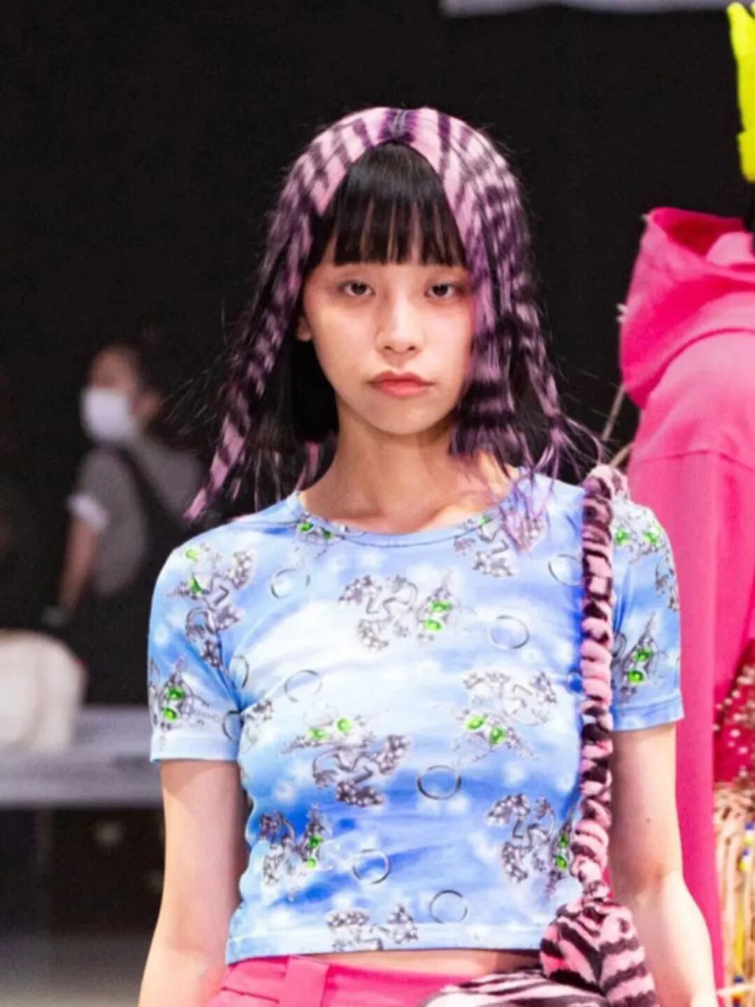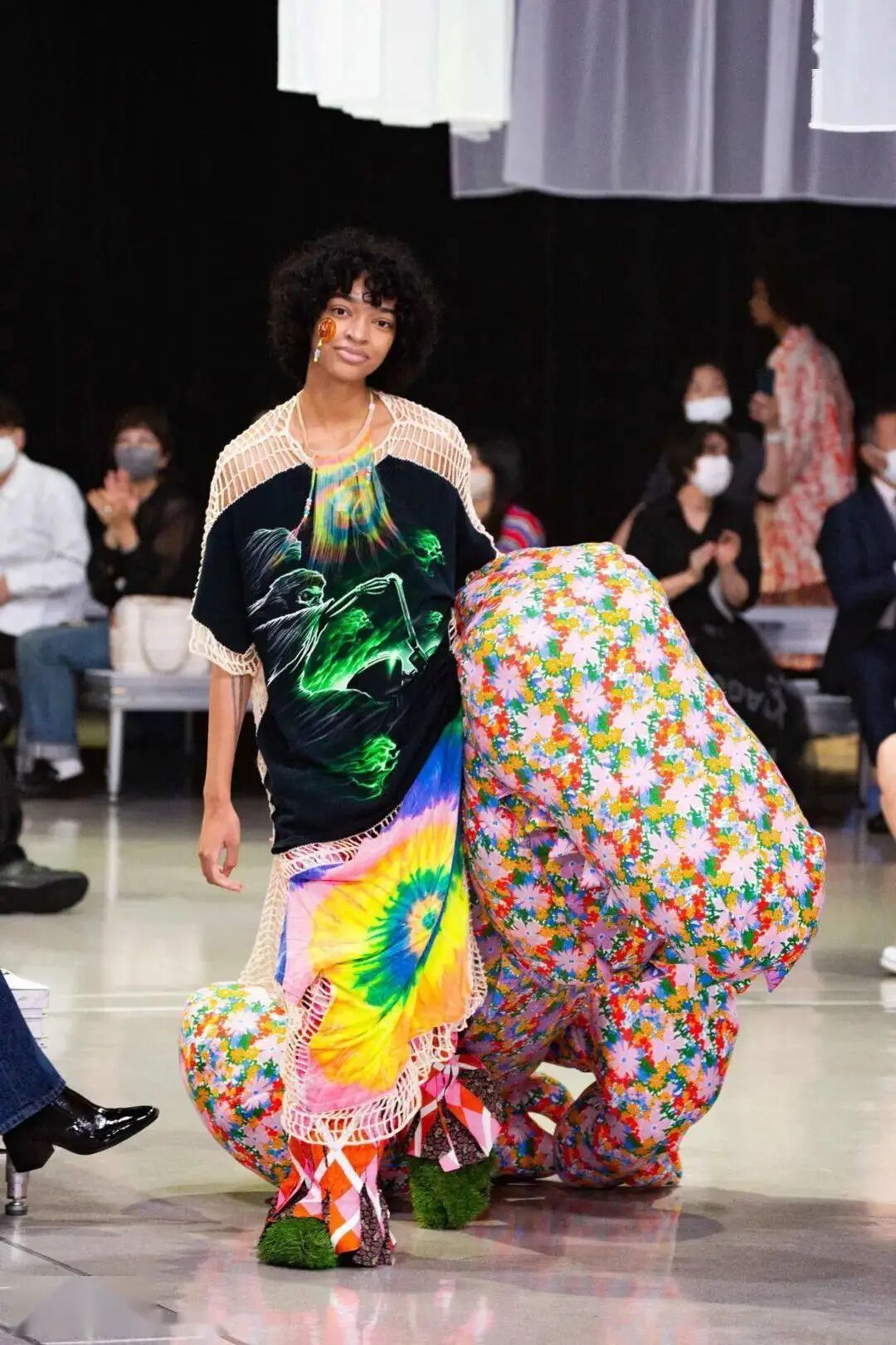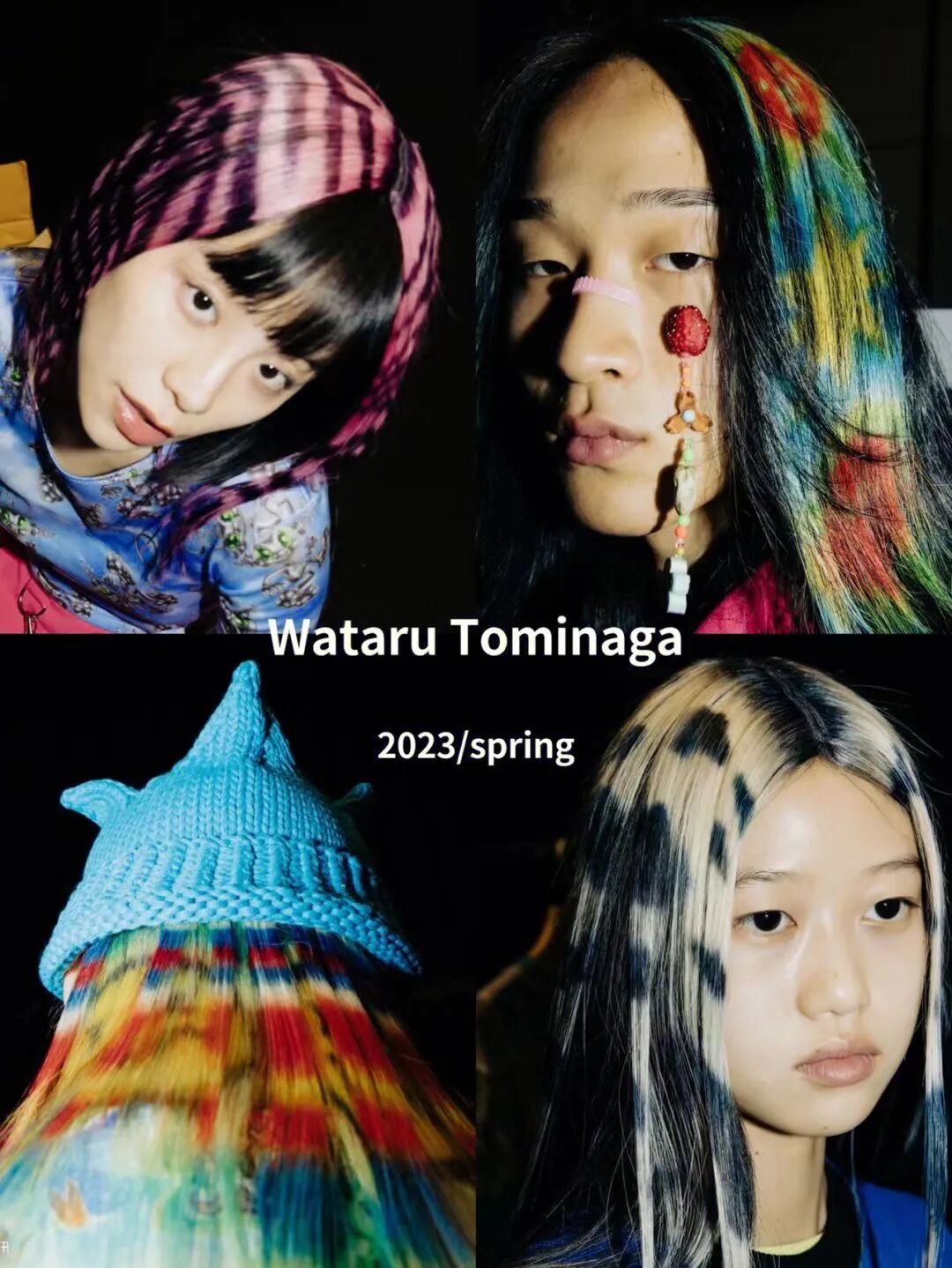 在东京时装周上Wataru Tominaga2023SS系列,创造性的挑战传统视觉体验,不仅服装炫酷,还将炫彩印花图案印在头发上,这位才华出众的设计界后起之秀可谓火力全开。