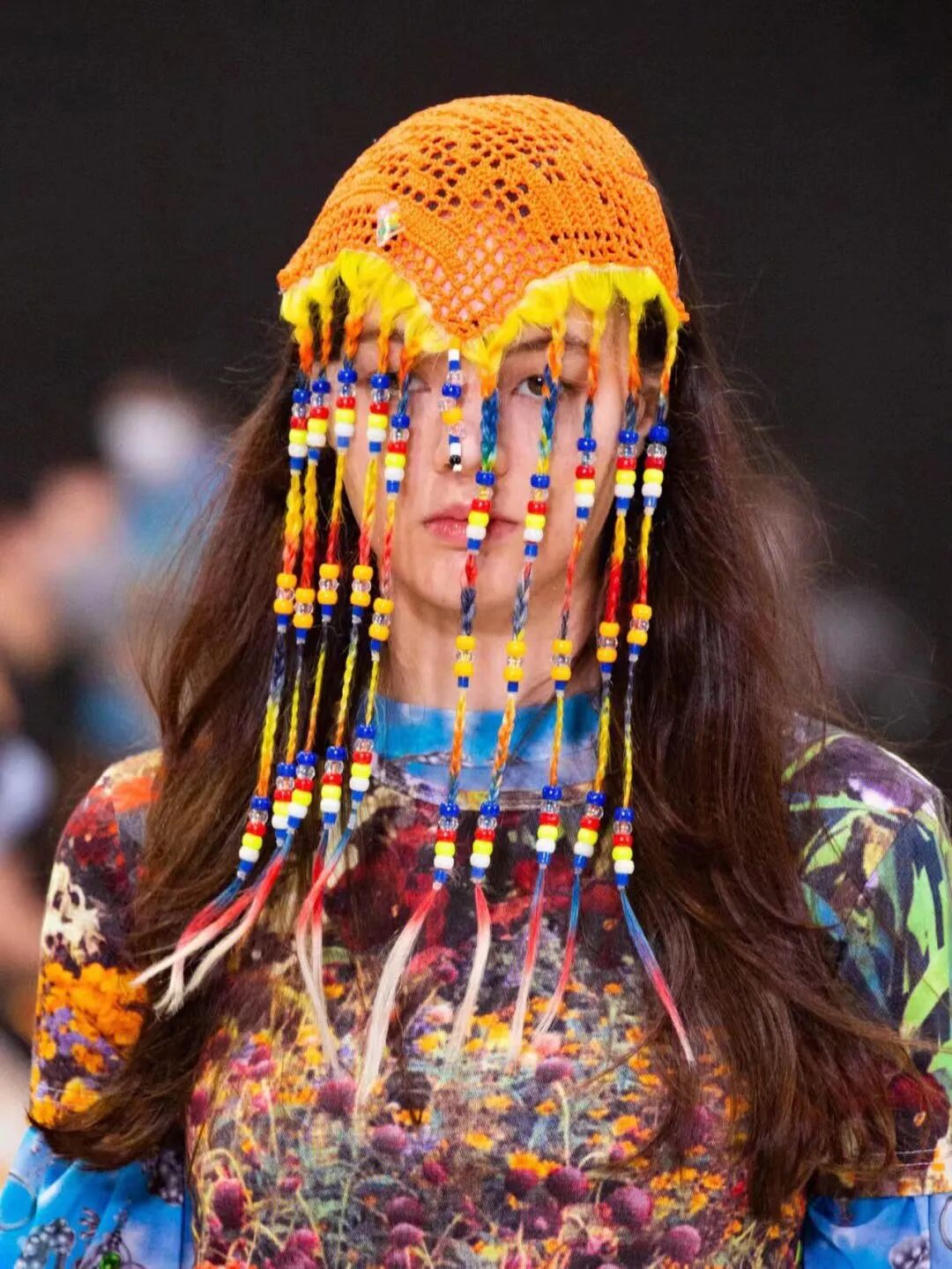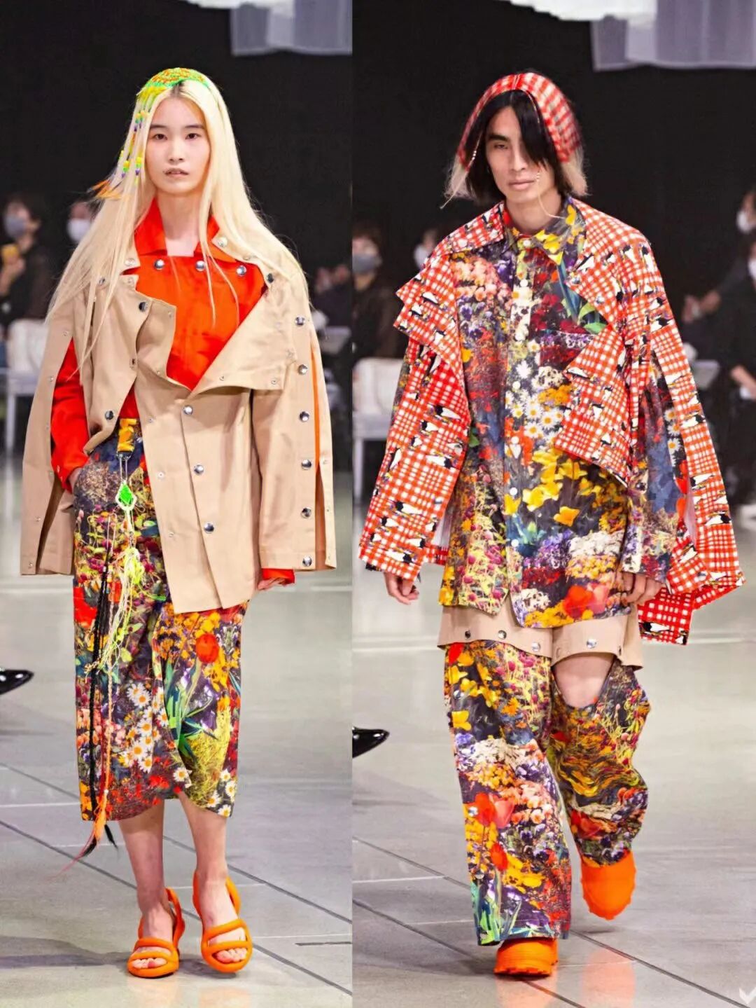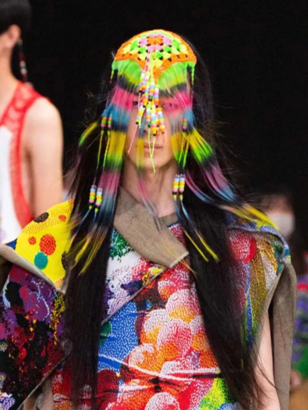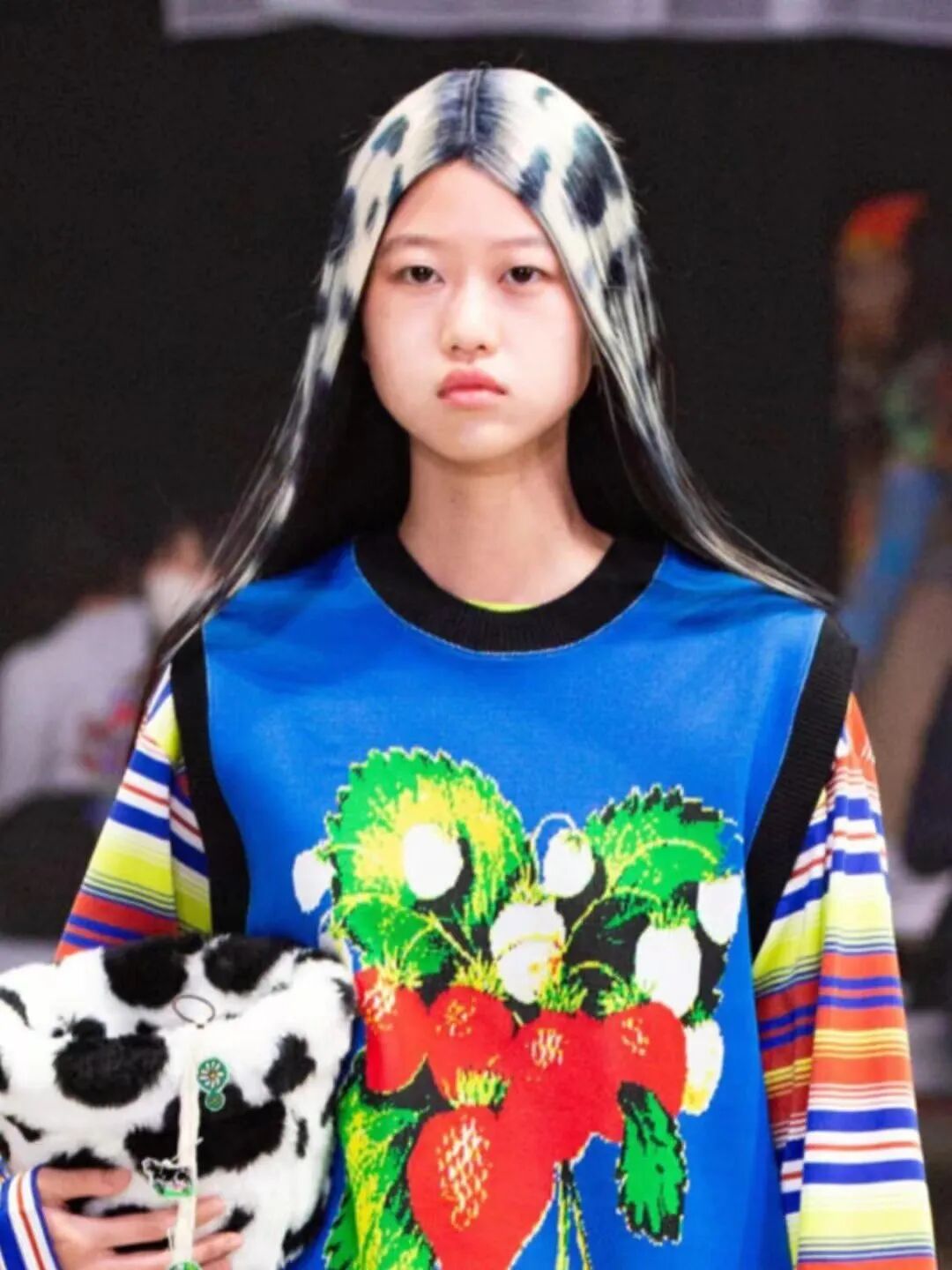 在东京时装周上Wataru Tominaga2023SS系列,创造性的挑战传统视觉体验,不仅服装炫酷,还将炫彩印花图案印在头发上,这位才华出众的设计界后起之秀可谓火力全开。