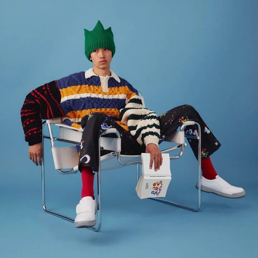 Wataru Tominaga从品类繁多的历史和地区服装文化及当代视觉文化中汲取设计灵感。将他眼中更极致的图案、配色、装饰、与面料之间的高难度处理,落实在服装系列中。