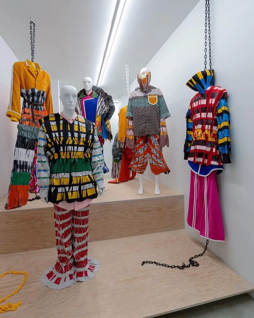 艺术家Wataru Fominaga创造了他独特的纺织品,具有通用、无性别主题特征,通过对织物进行扭曲、缝合和缝合来操纵这些材料。