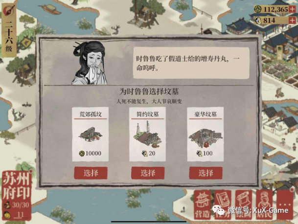 另外游戏中有一些对情绪低谷的处理,比如将枯燥的事情趣味化:对于新闻植入,相应的公告新闻会由一个叫”包打听“的人告诉你,仿佛像在跟你讲一个八卦新闻。也会放大爽点,比如放大收获:探险时挖摇钱树的时候,能意外获得一些道具,这种意外之喜增加了用户情感曲线的愉悦点的高度;也会合理使用共情,将游戏里的情绪传达给玩家,比如居民关系的变更、婚丧嫁娶,有可能同住一个屋檐下的两个人因为翻看对方日记而吵架,也可能某人收到一个发簪而欣喜,也可能出现某一居民去世而需要修建墓碑的时刻……这些点滴所产生的情绪体验能够传达给玩家,并与一些道具消耗相结合,是游戏的成功之处。
