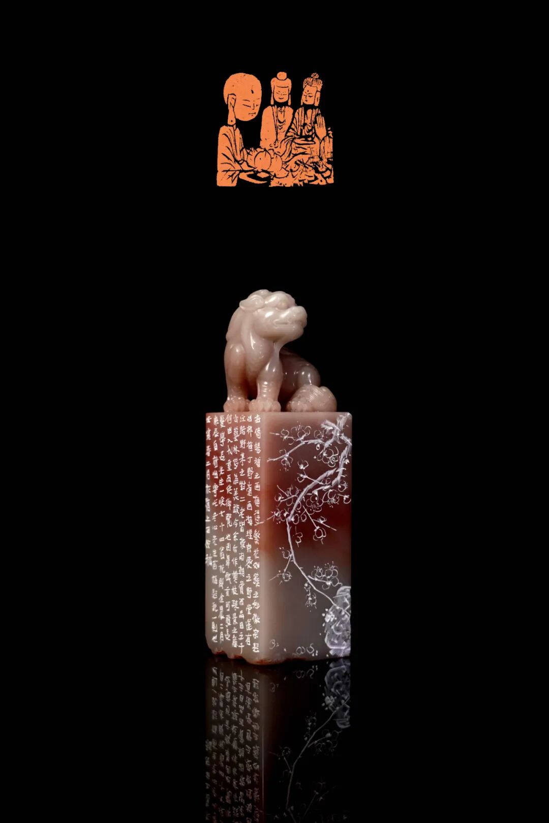 近年来,在创作中又融入历代摩崖石刻、石窟造像、汉画像砖等拓片艺术。对于佛像印的创作,曹祐福先生的是:刻佛像应力追残损,如能漫漶宜佳。过于清晰可辨,精近矫情则丧失朴华天真之气。