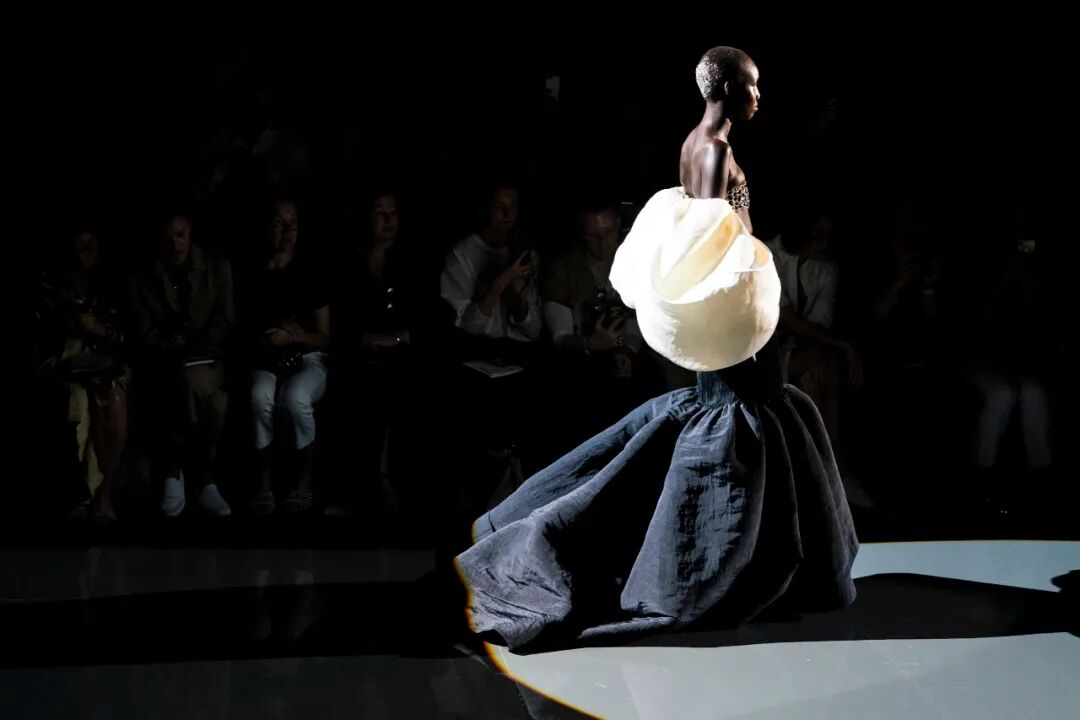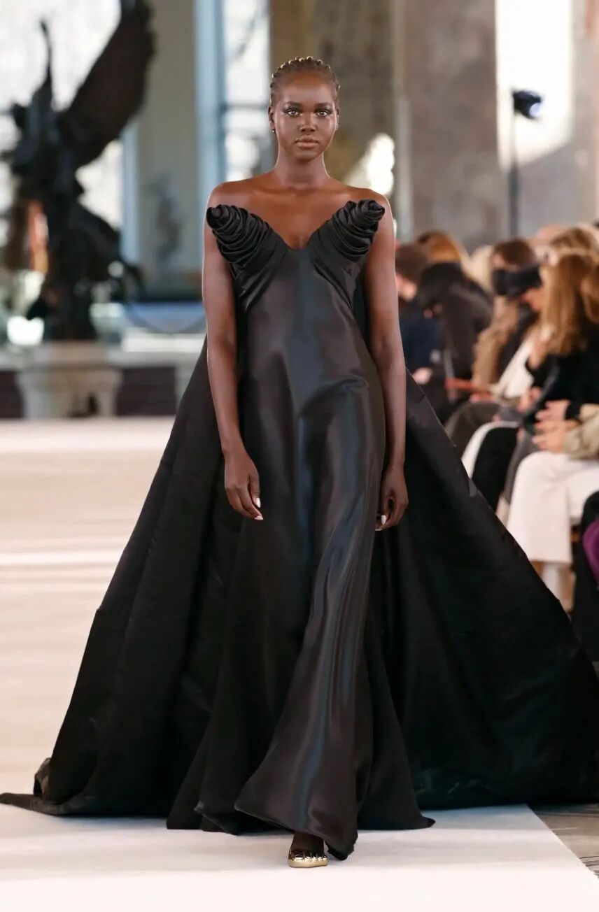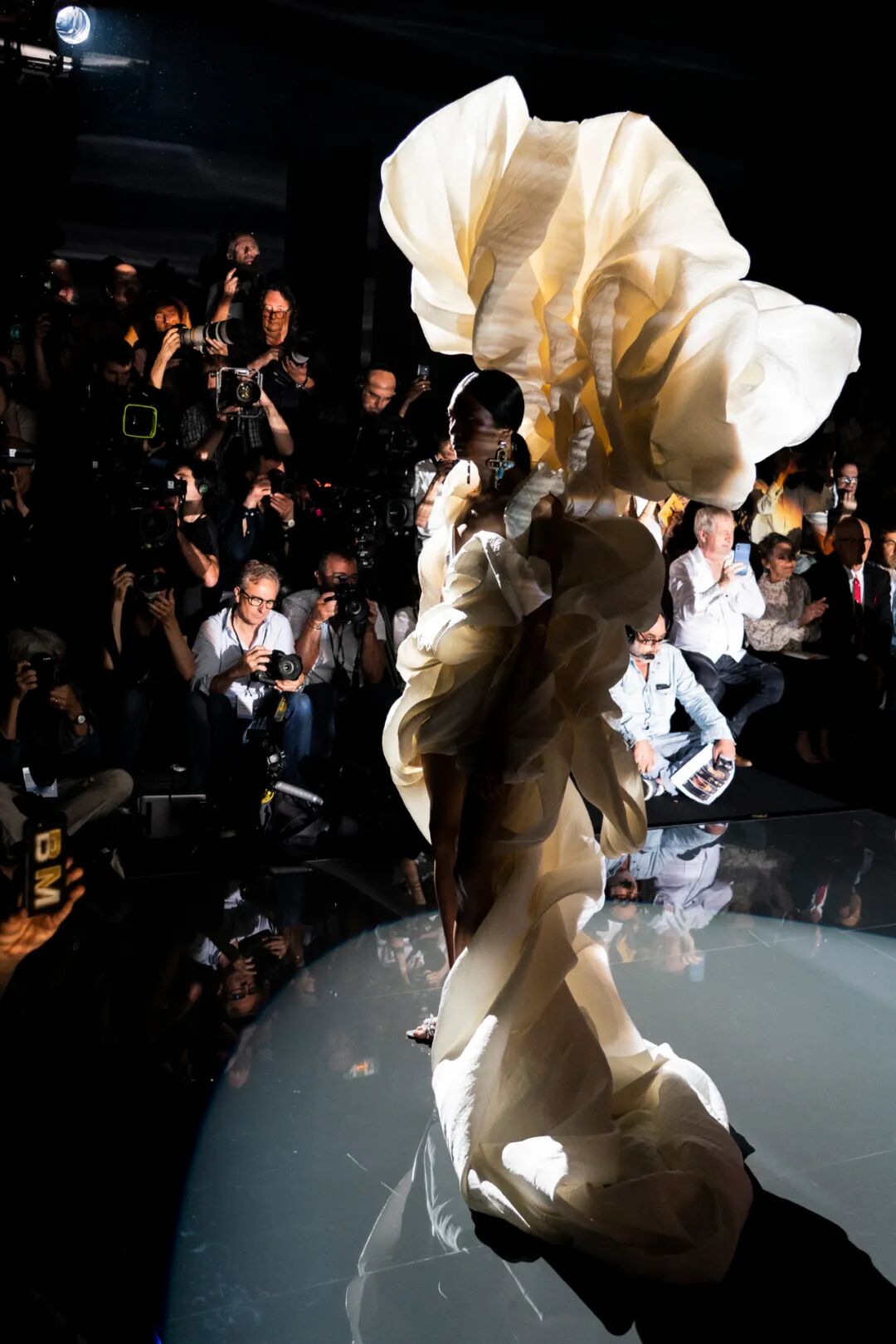在Schiaparelli礼服上出现的人体器官和各式花卉,都将服装赋予了不同于一般意义的语言。人体仿佛成为承载着艺术的雕塑,在戏剧化的手法装饰下述说着时代留下的痕迹。