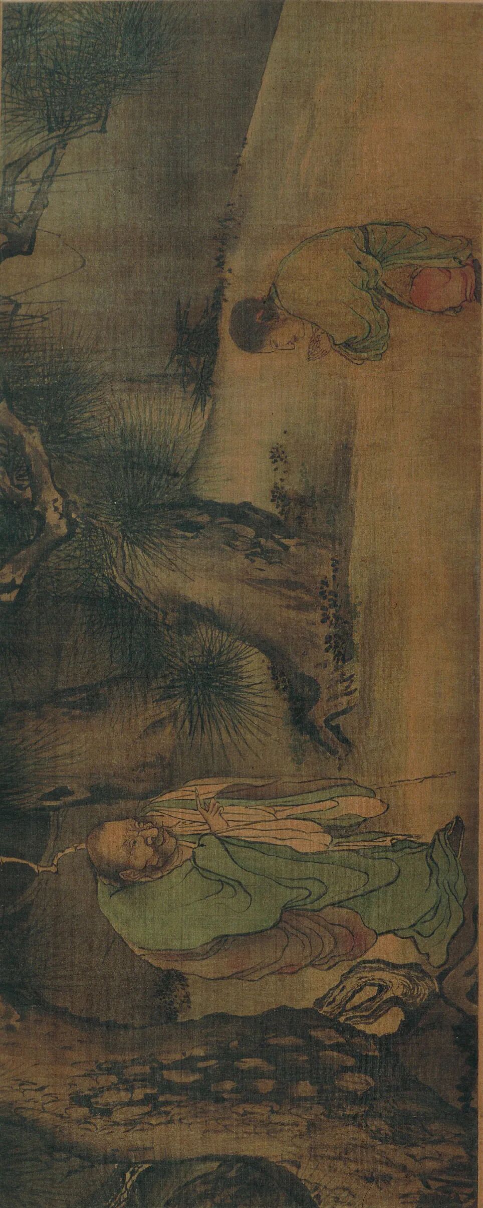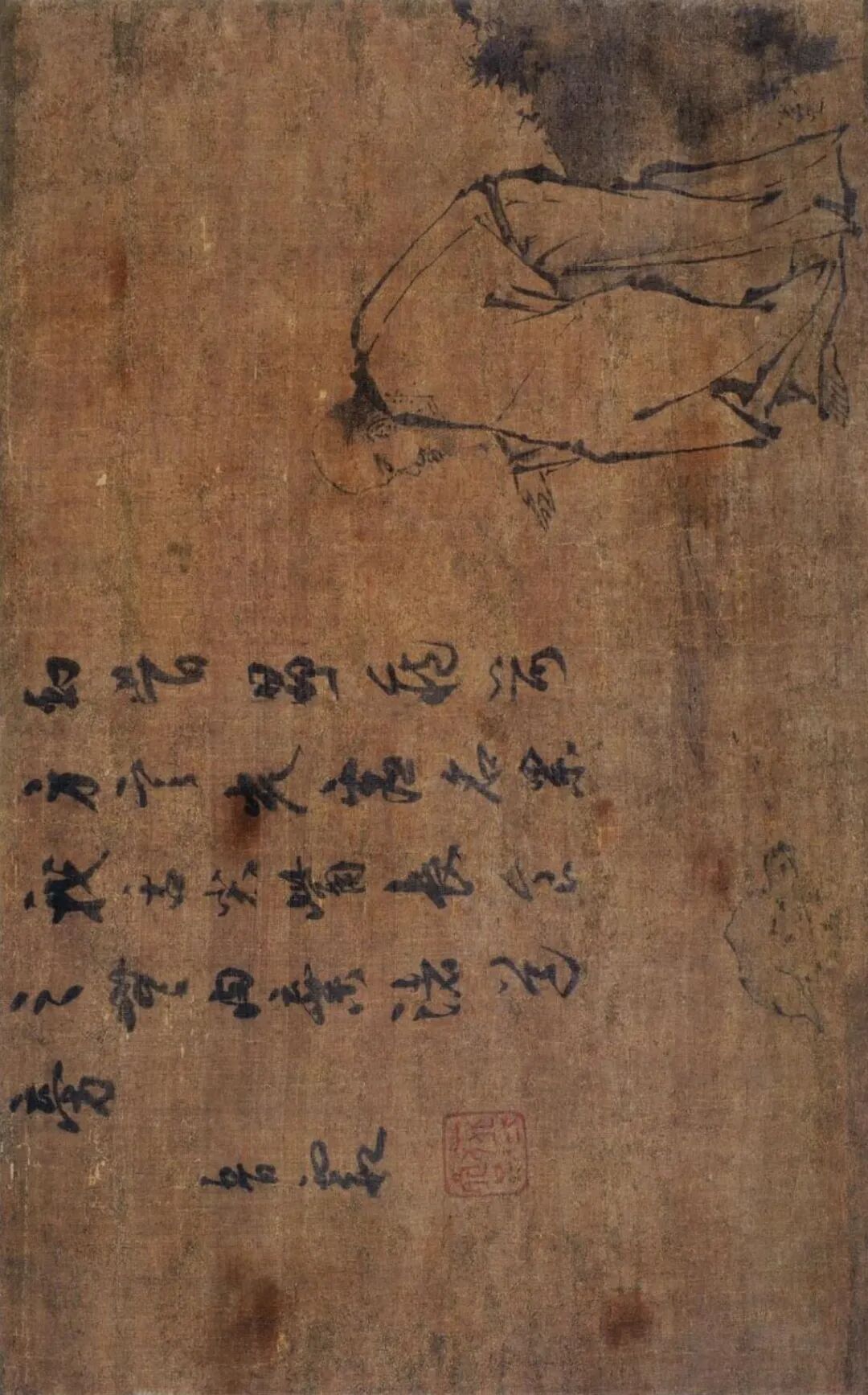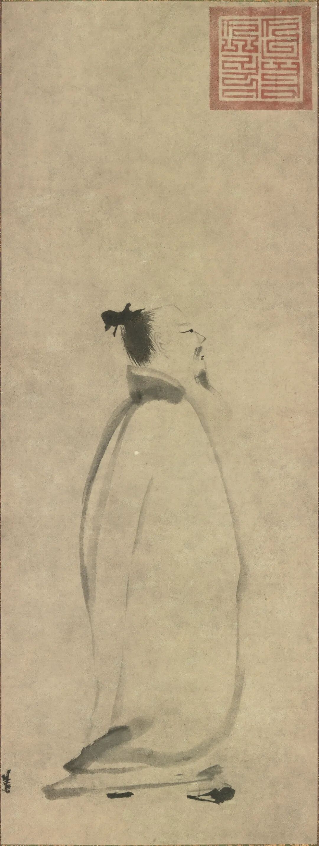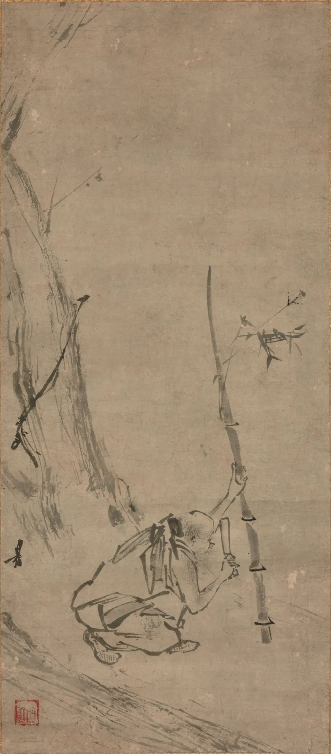 梁楷,生卒年不详,祖籍东平(今山东省东平县),善画人物、山水、道释、鬼神。宋宁宗嘉泰(1201—1204)年间画院待诏,赐金带,而梁楷不受,挂于院内,扬长而去。嗜酒以自乐,号曰“梁风子”。其绘画风格有两种,一种是为画院画家所敬佩的细笔法,另一种则是用笔简略粗犷的水墨人物减笔法。