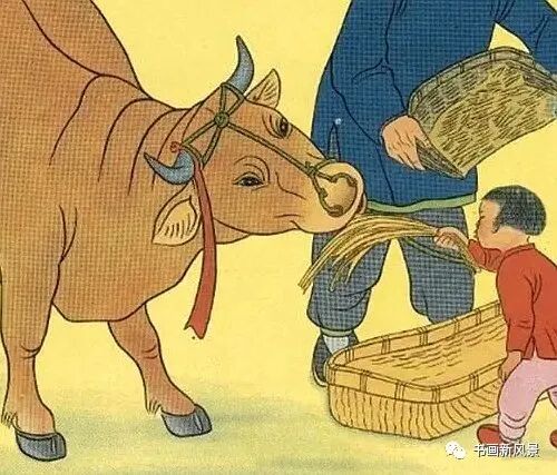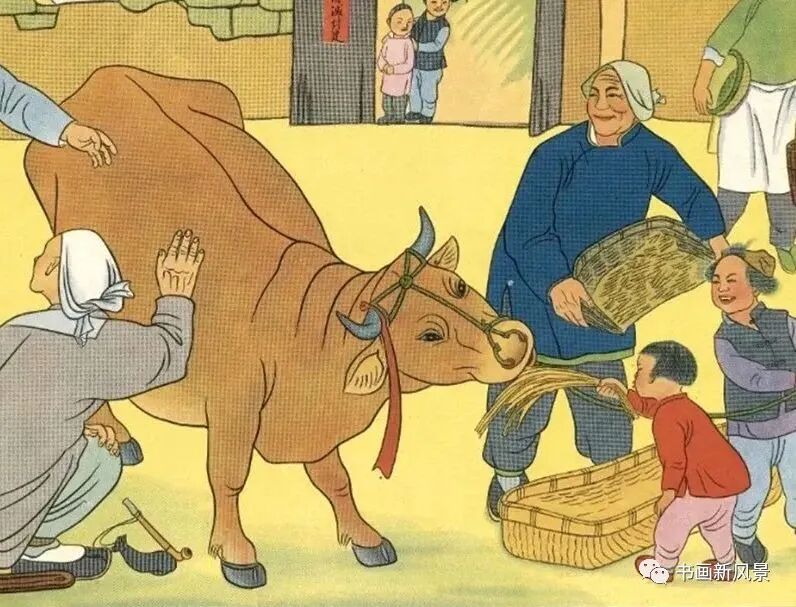 李可染这幅《新得的黄牛》,表现了当时翻身农民得解放,分到土地、房子和耕牛时的喜悦心情。