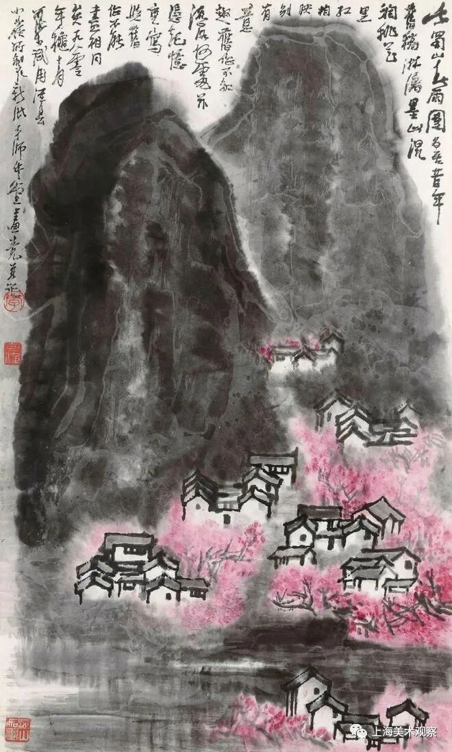一次,李可染拿着画让齐白石批评指点,齐白石看了画沉静了一会儿,说:“我一生特别喜欢草书,尤其是徐渭徐青藤潇洒的字和画,可我一辈子到现在,快九十岁了,还是写楷书……”齐白石婉转地指出李可染作品快与轻的毛病。1947年,李可染书体上有了新的变化,每个字最后一笔的伸展,横笔画最后收笔时向右上方翘起的汉代隶书笔法,都与齐白石的用笔特点相似,李可染透过齐白石影响,开始由石涛、八大的传统转向了更晚近的金石画派的新传统,这是李可染四十年代做出的最意味深长的选择。