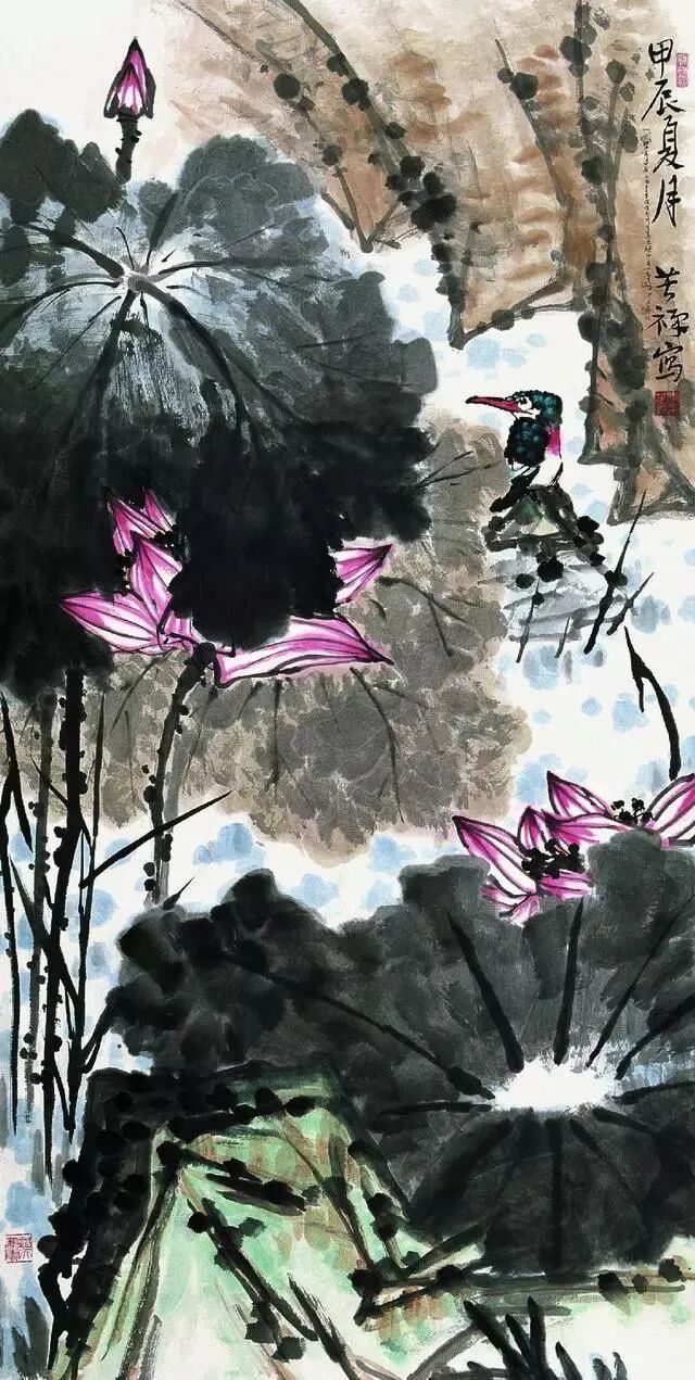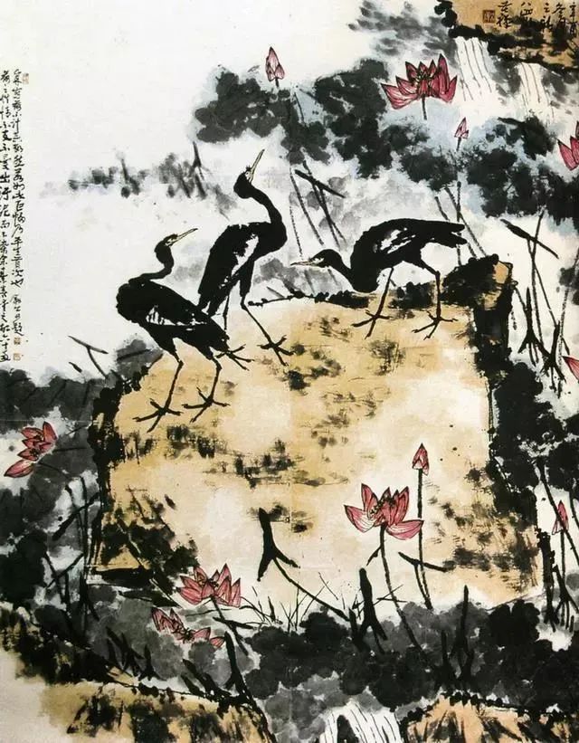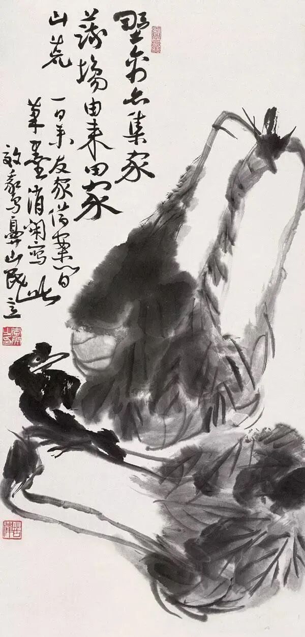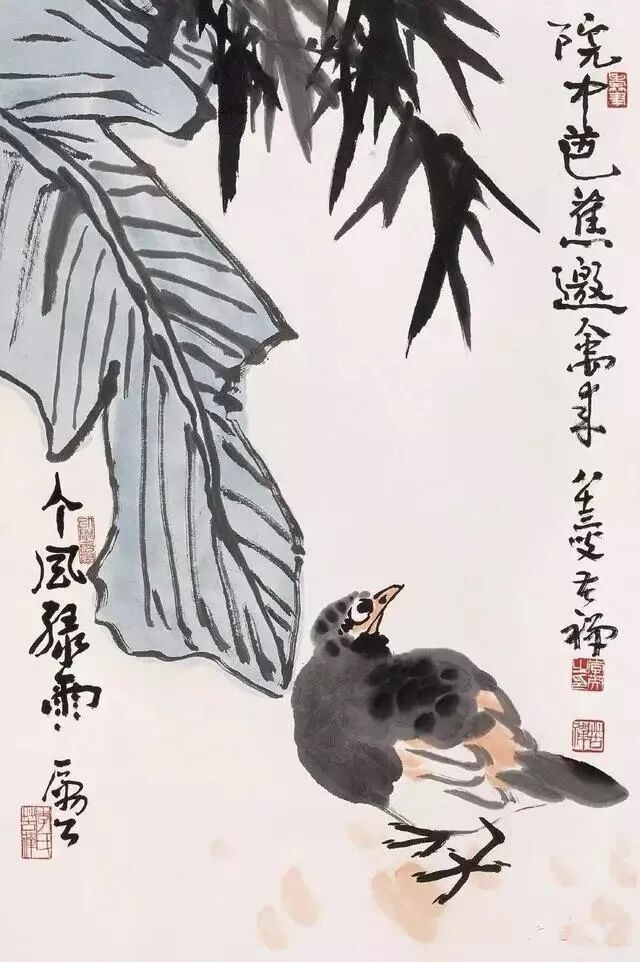 讲笔墨,初讲可以说“:线者为笔,染者为墨”,易懂易入手。进而应当明了“笔中有墨,墨中有笔”:用墨无笔,古人称之为“墨猪”,它有肉无骨;用笔无墨是行笔间缺乏墨色浓淡干湿的变化。其实“笔”与“墨”分不开,所以叫“笔墨”,它是一种表现美丽的手段过程。如同地球公转和自转:为表现意象造形的美服务,是“公转”;它也有美的自我表现,是“自转”。笔墨离开了这个意思,那就是“耍笔墨”,那不是“笔墨”,更不是写意画。
