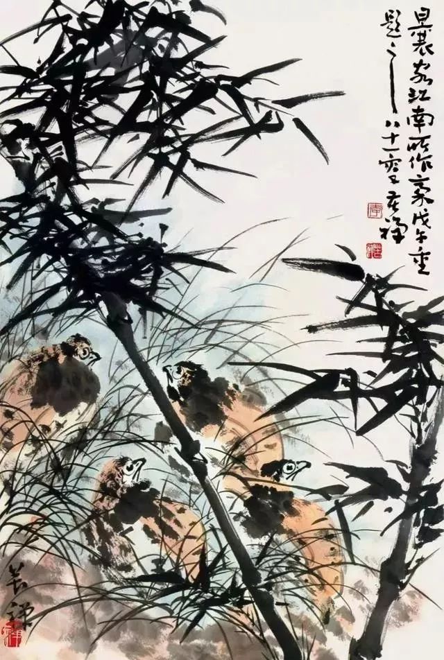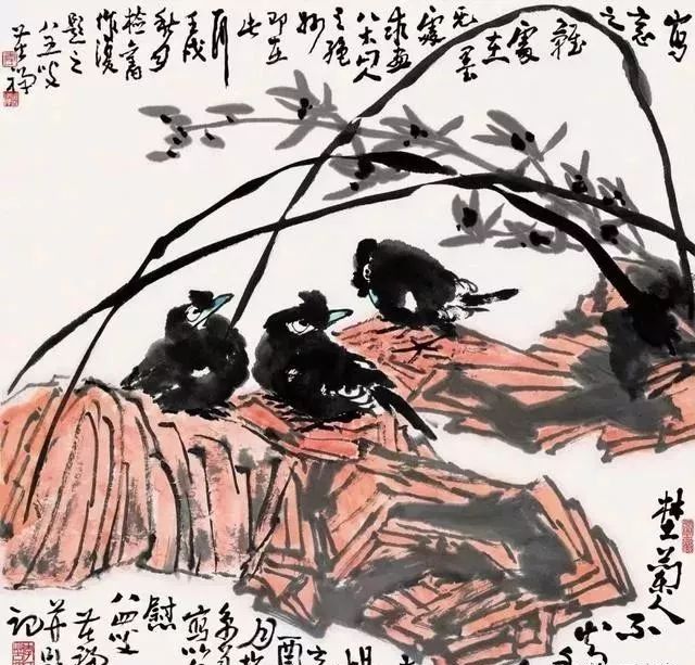 这已经达到中国大写意书画“技术”上的最高境界了!吴昌硕、齐白石都达到了这样的境界,他们画中的每一笔,都能放在他们自己的书法作品中毫不突兀,看他们的画,和看他们的书法是一样的。百年以来,中国画坛能达到这个高度的,寥寥数人而已。