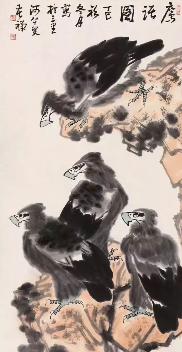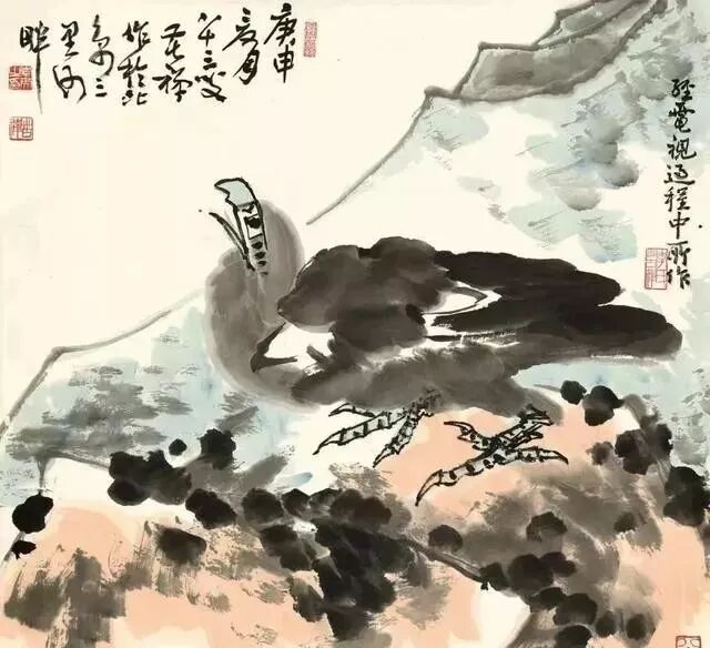 智者功夫仁者眼,直将铁砚磨穿。苍鹰一搏九重天。谁云书画苦,笔墨可通禅。