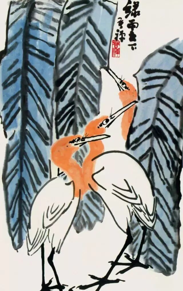 当时我最爱大黑鸟,如:苍鹭、鹫、雄鹰、鸬鹚、黑鸡、寒鸦……因为它们有气势,有力量。“别傻画”,有时要观察对象许久才动笔去画,这样画的东西才是活的,生动的,而不是博物图上的。古人观察得很细啊!