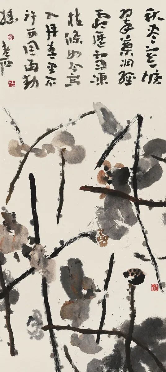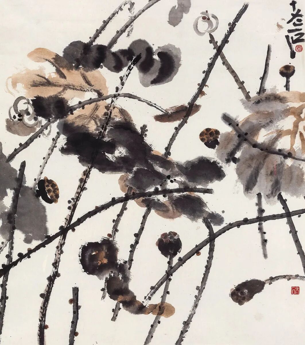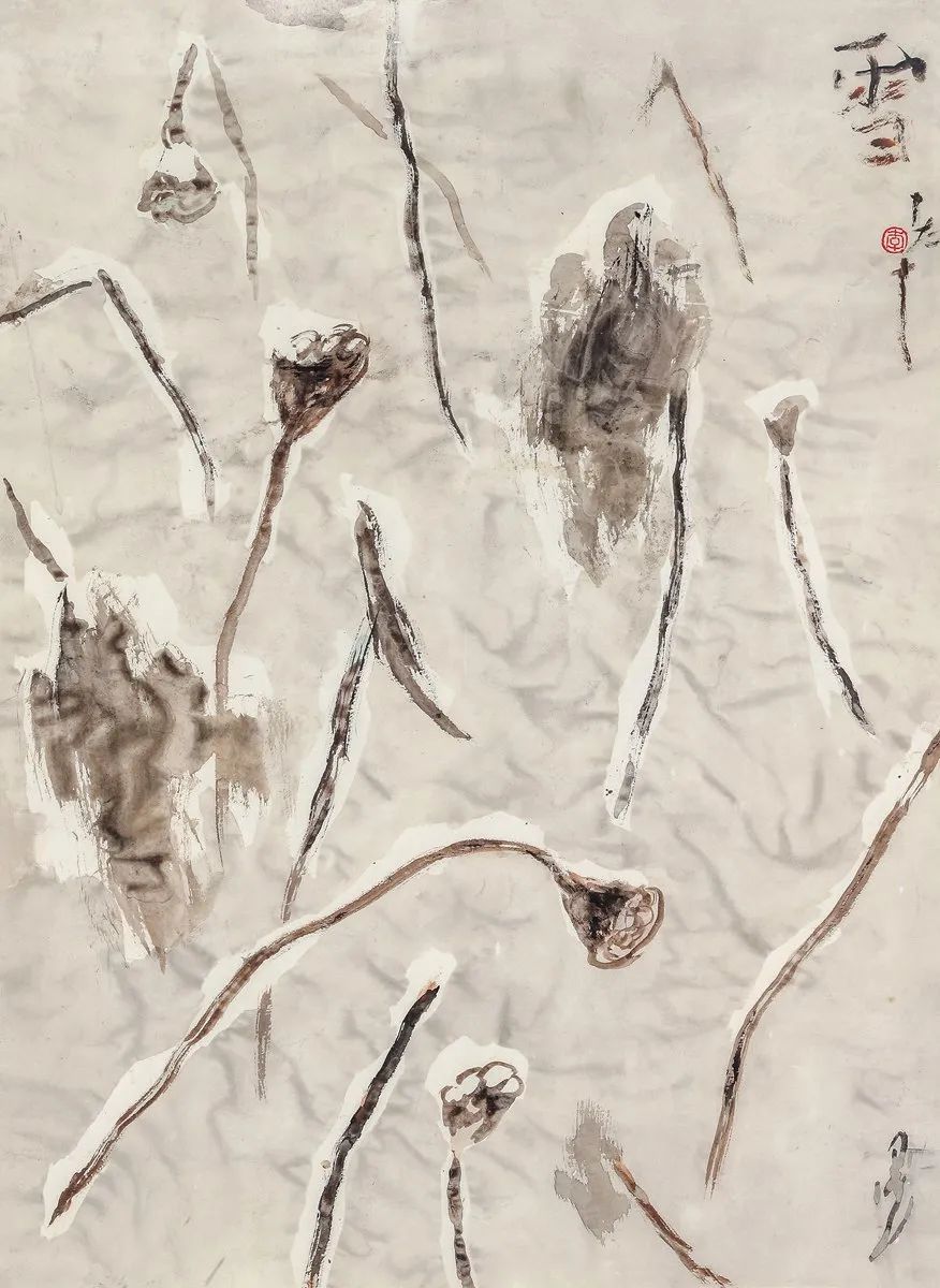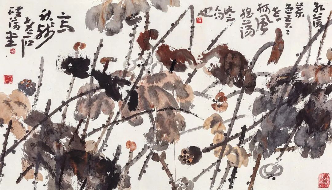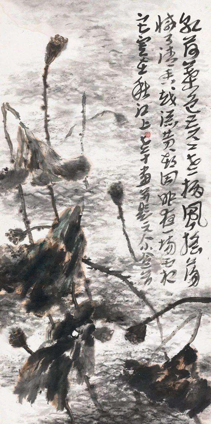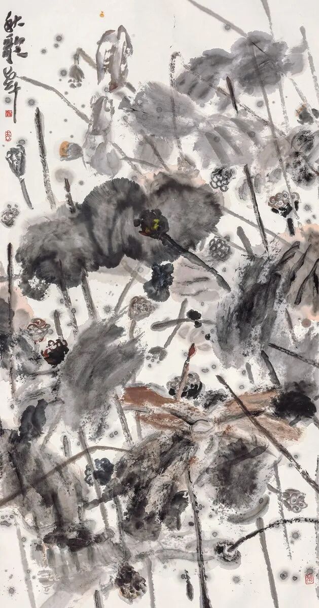 他的“破荷堂主”之号,亦由此而来。观残荷而“心为之动”,不是因为“秀色空绝世”的鲜美,“出污泥而不染”的清高,或者“月晓风清欲堕时”的幽淡,而是因为一种发自心底的悲秋情怀,他的残荷完全是自己的心灵境界的幻化。