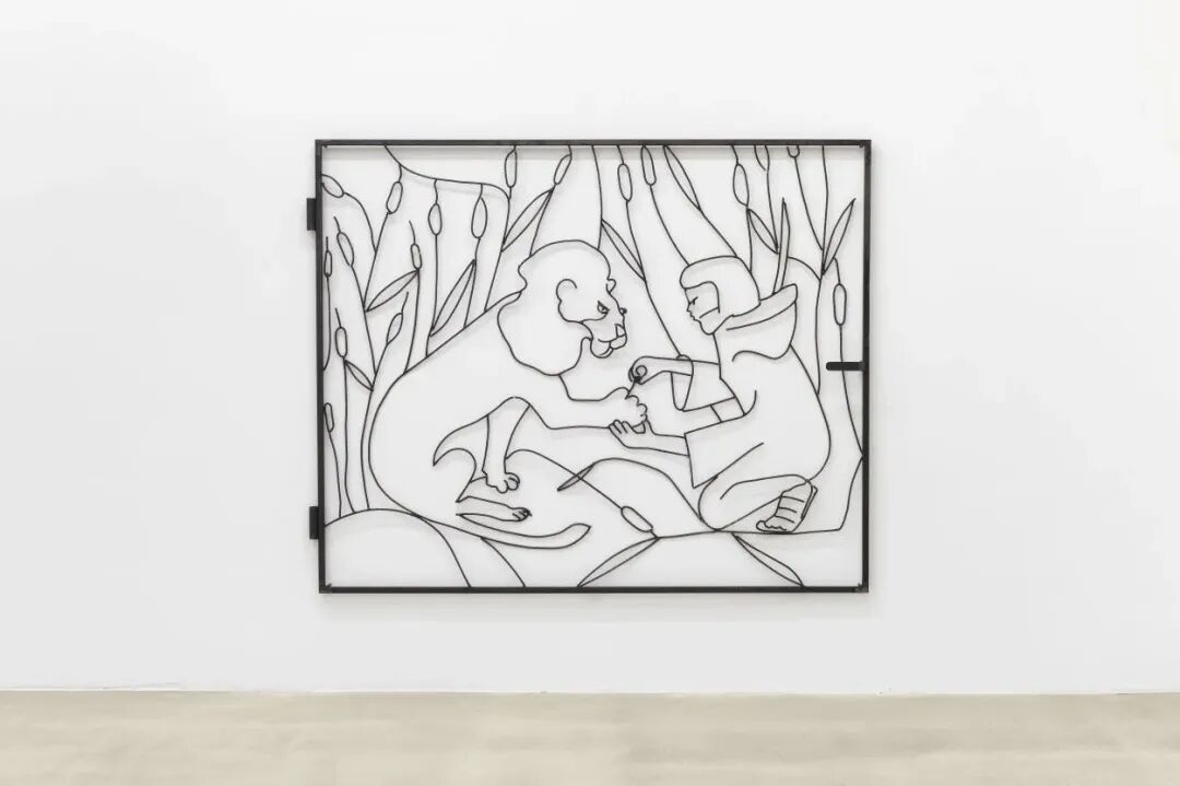 圣杰罗姆和狮子,2016 年,钢和漆,59 x 73 1/4 x 3 7/8 英寸