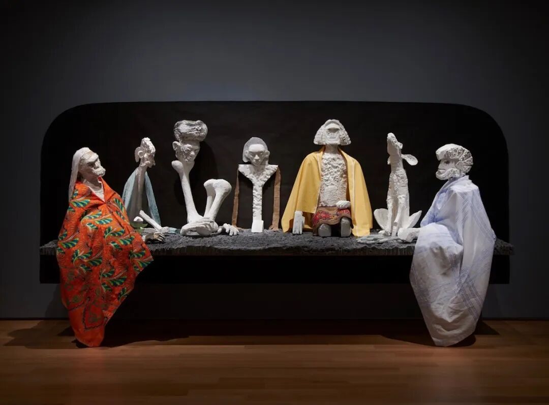 有猫的女孩,2019,泡沫塑料、黄麻、钢、丙烯颜料,107 × 81 × 70 cm