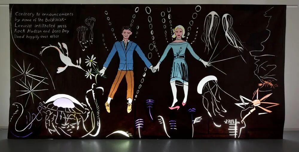 努斯, 2012,浮雕。聚苯乙烯泡沫塑料、钢、铝箔、木材。PVC、石膏、漆、胡桃木、拉绳,180 x 250 x 62 cm