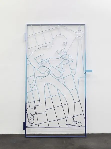 动物从笼子里解放出来 XV(大门),2014,蓝漆钢,196 x 116 x 6 cm