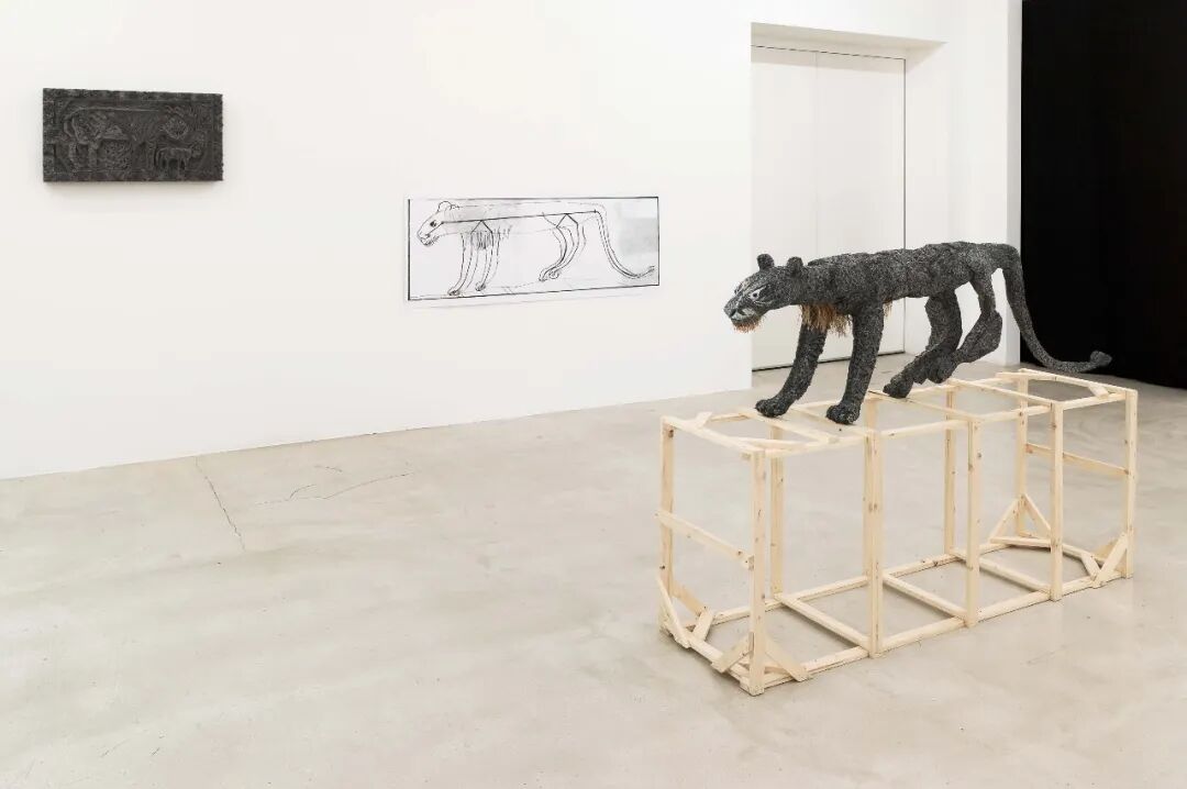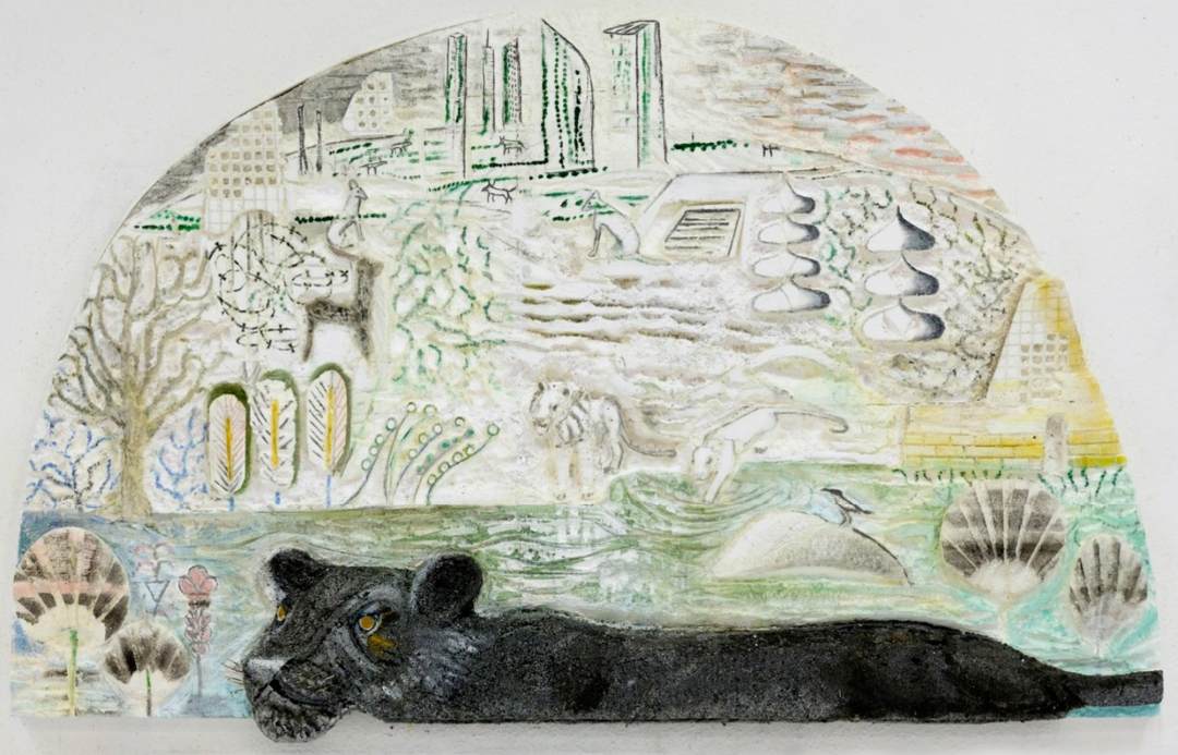 黑豹浮雕,2017,涂漆泡沫塑料,木头,112 × 184 × 10.5 cm