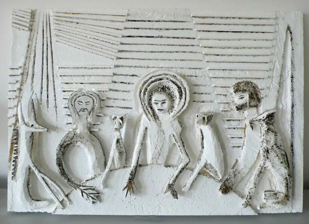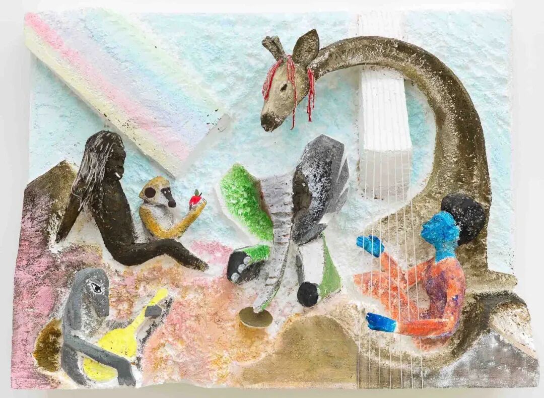 哈托尔救济, 2017,浮雕/泡沫塑料、丙烯颜料、木头,69 × 99 × 17 CM