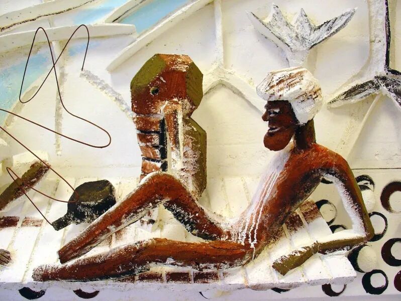 青尼罗河救灾, 2011,浮雕/泡沫塑料、丙烯颜料、钢、黄麻、木材,126 × 188 × 35 厘米