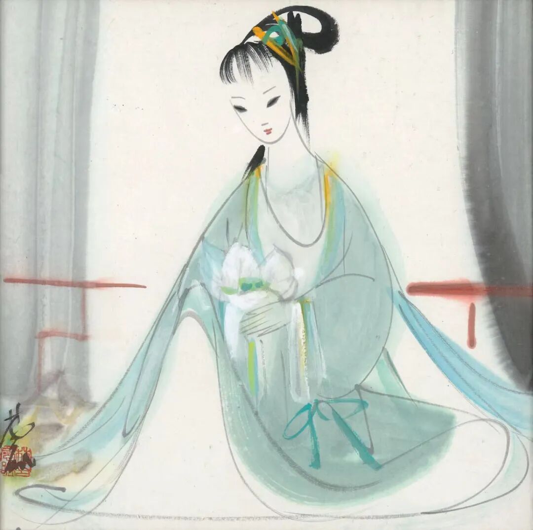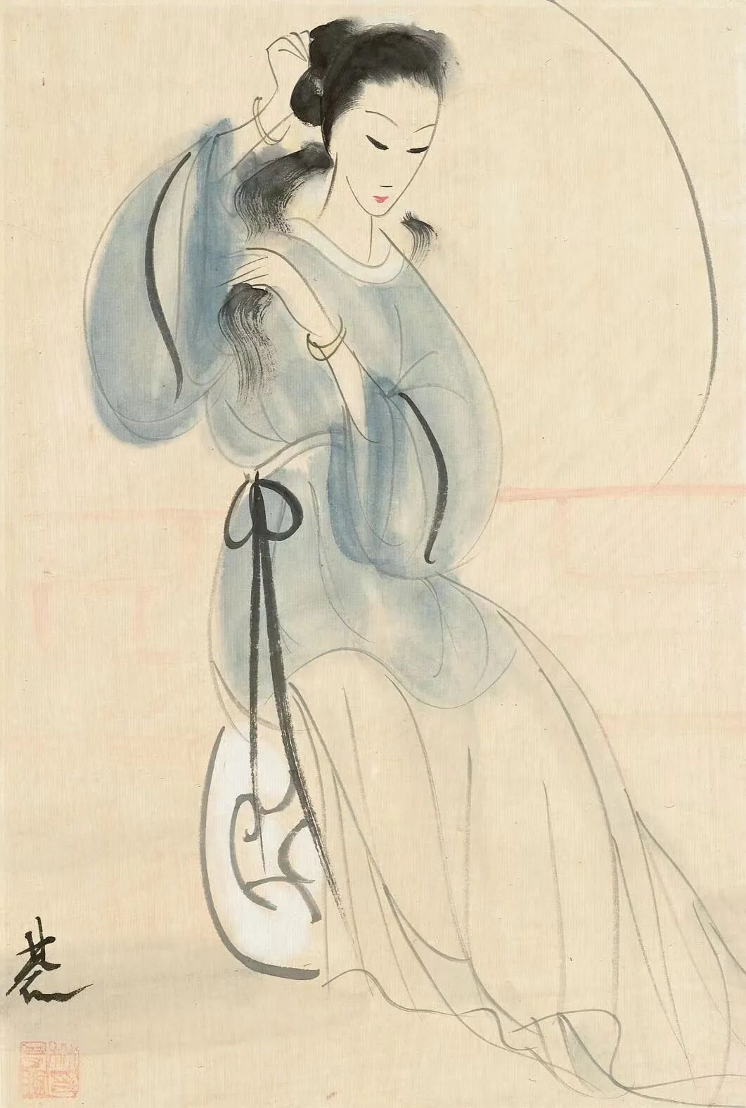女性题材人物画是林风眠的重大创作方向,一直持续到晚年,特别是“新仕女”系列。