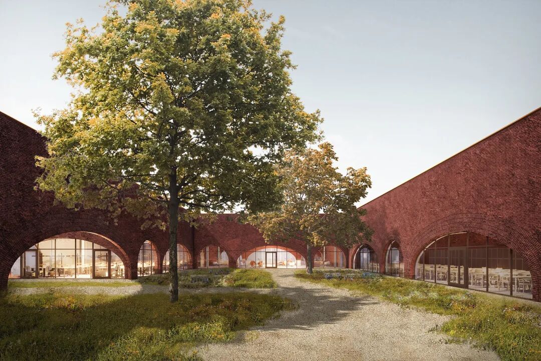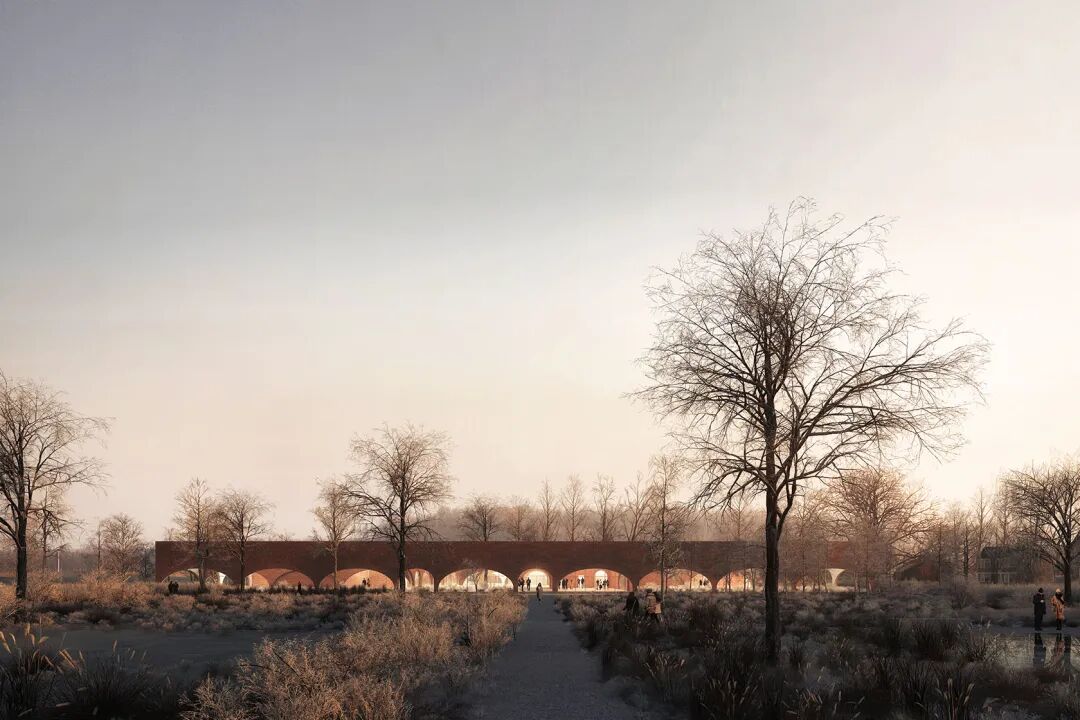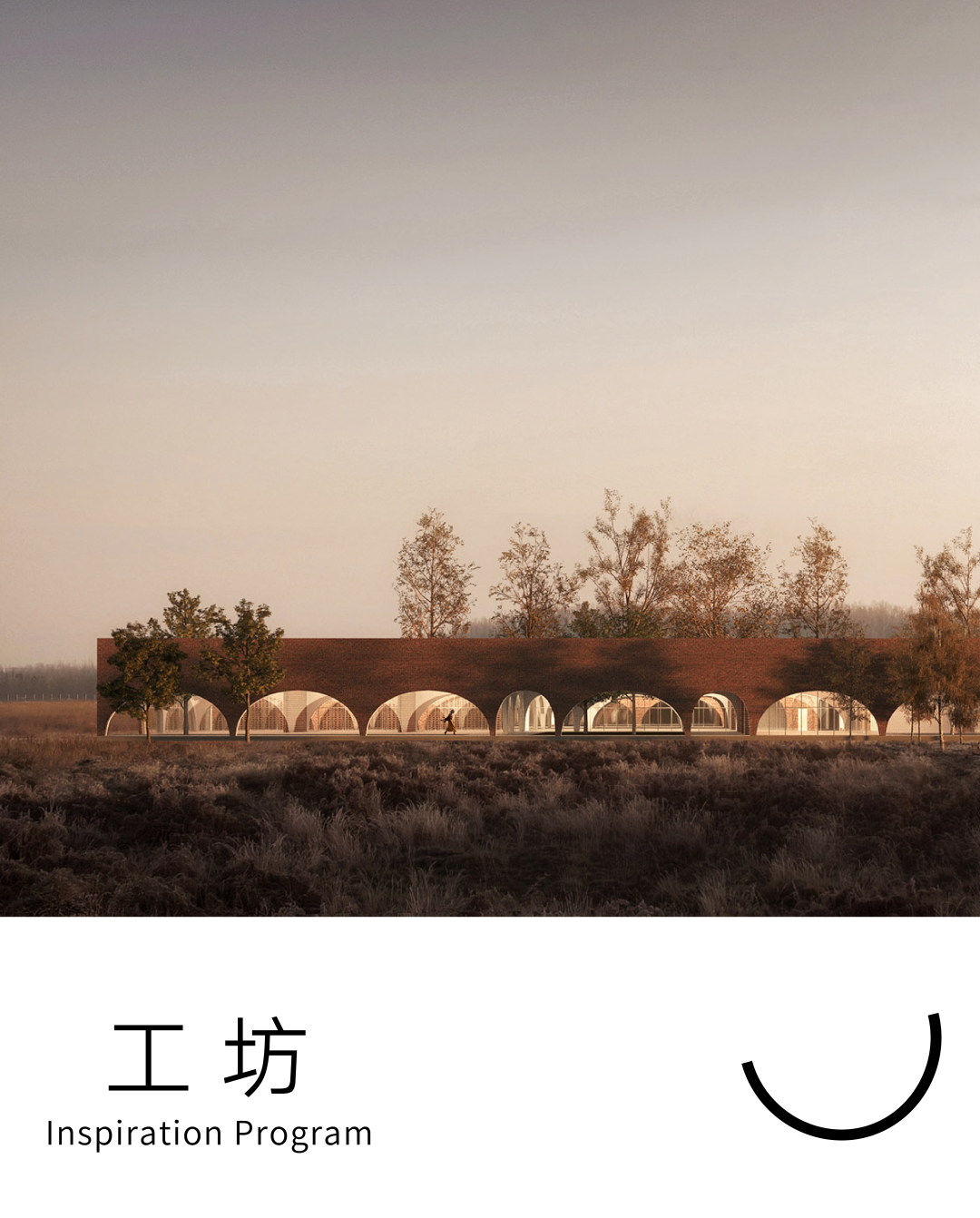 该工坊的设计跨越景观,拥有伟大而完美的拱门和中央庭院,其目标是成为“景观的诗歌”,因为整体设计语言将自己轻轻融入现有景观。