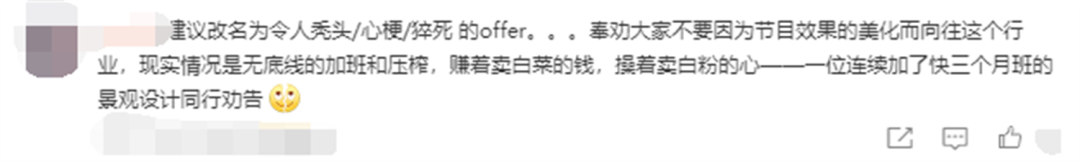 一些网友担心这个综艺会不会美化这个行业,不能让大家看到行业的真实情况,也有不少人把综艺名改成令人心梗的offer。