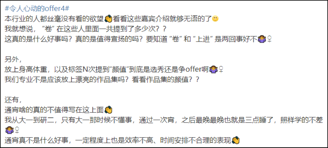 再谈颜值,对于这类职场真人秀节目以及建筑学院的大佬们来说,华丽的外表应该是锦上添花,过硬的个人能力与才华才应该作为核心看点,因而一味去引导大众看颜而忽略最不应忽略的东西有些本末倒置。