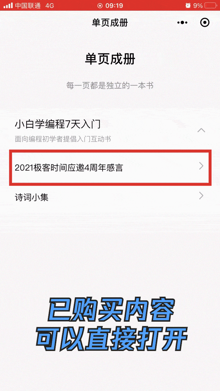 主页面中每一列都是一个可销售的商品,即用户每点开一个新的页面都是需要支付才可以看到相关内容,内容可以是文本、视频或音频。用户进行支付后,解锁相关的内容权限,整个过程自动化销售,实现产品闭环。
