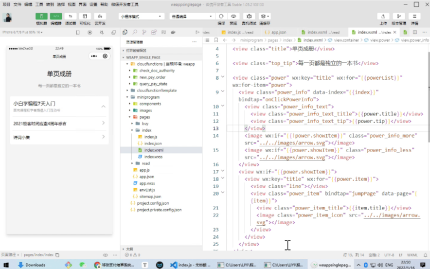 该小程序主要包含主页面(index)、支付页面(buy)、商品内容页面(read)这三个页面。主页面(index.wxml)负责渲染出所有待售商品列表,可以根据需求自由添加商品。