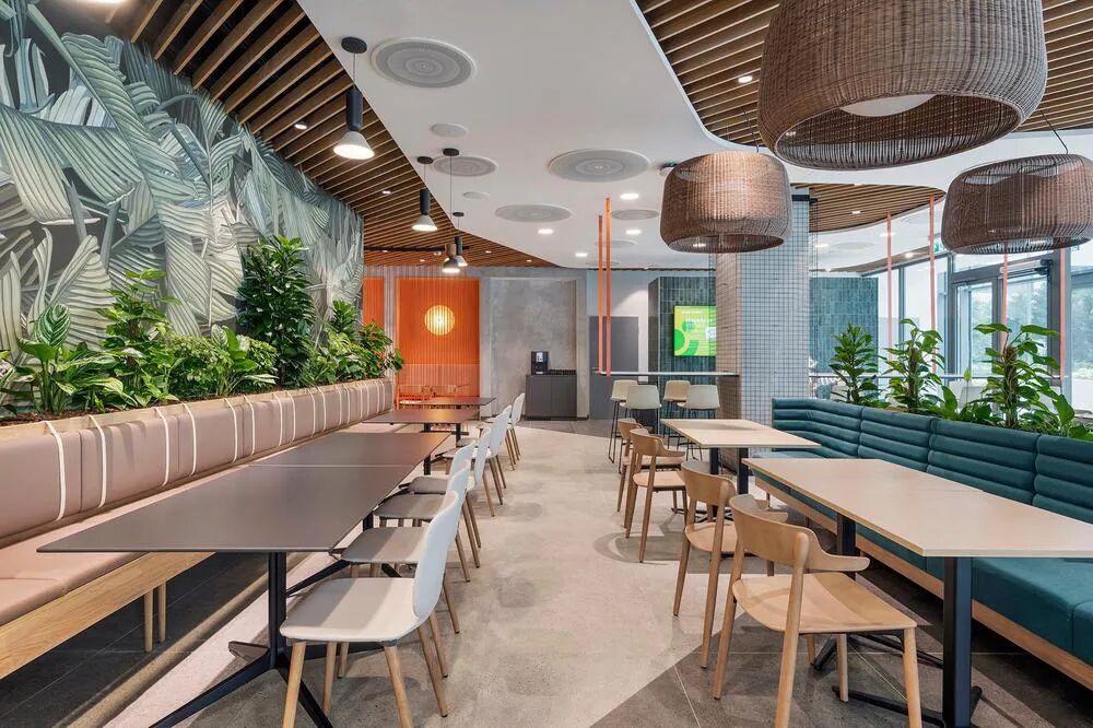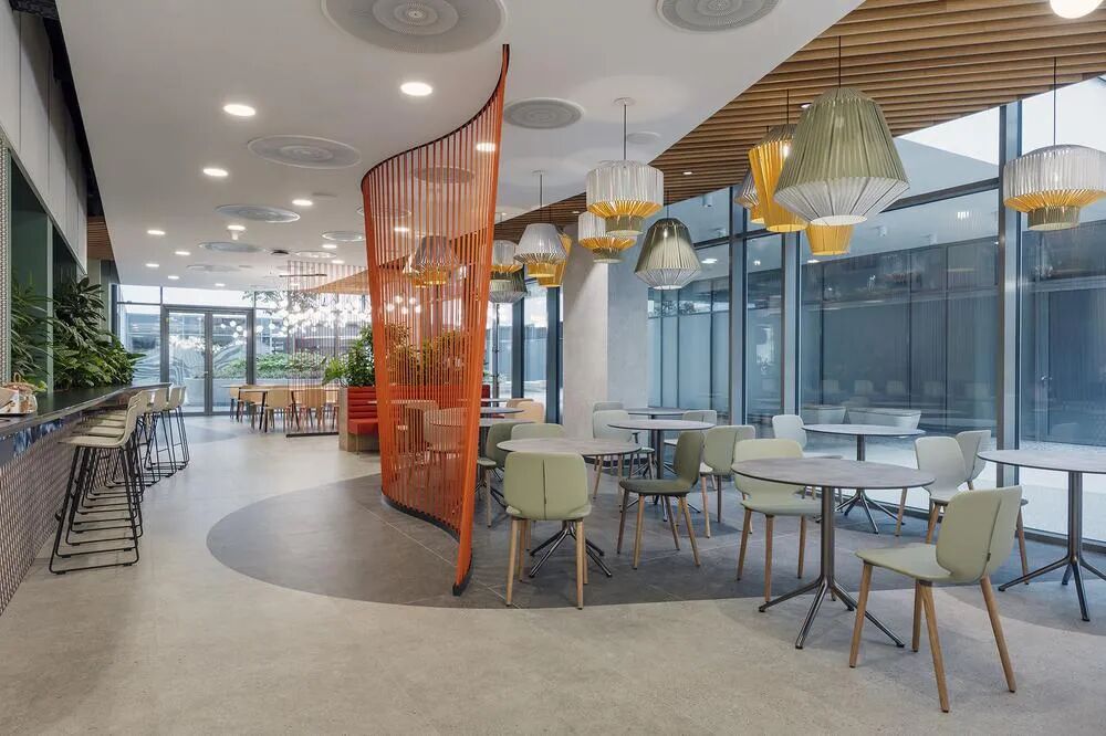 Tags:金融/投资,匈牙利、总部大楼、超大型空间、混合办公、开放协作灵动多元、有机曲线、亲生物设计、时尚办公网