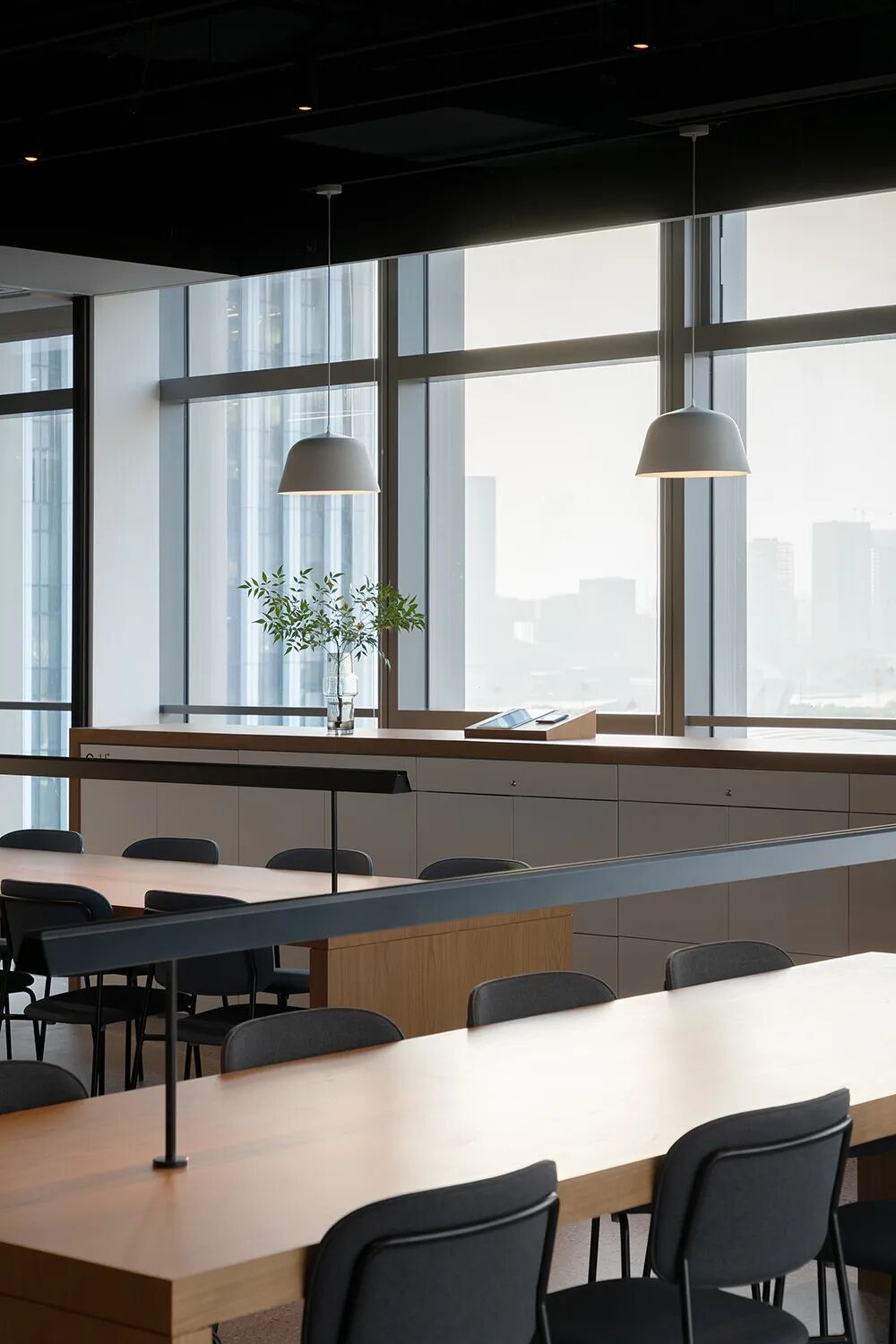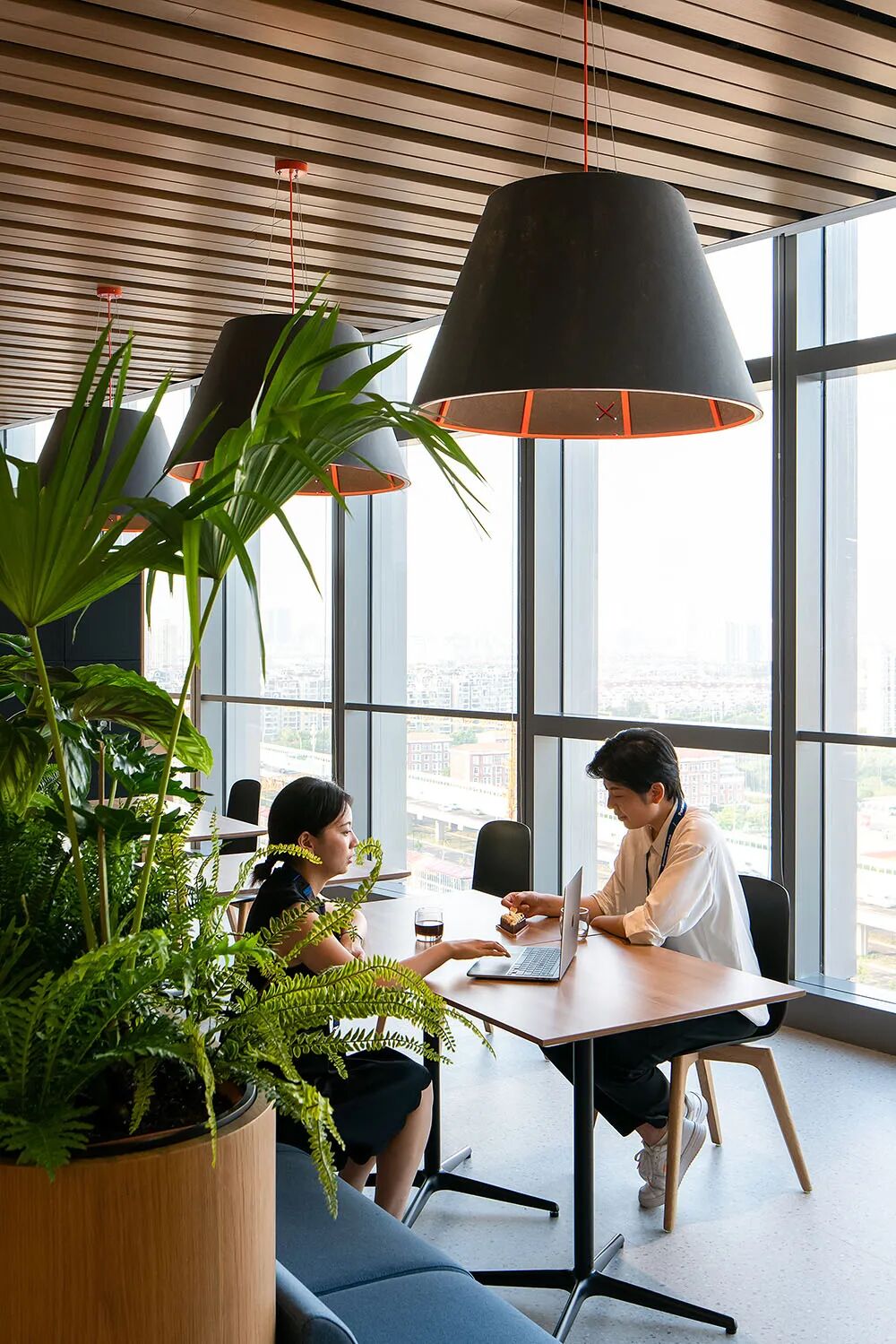 基于松下上海办公室工作内容的需求,采取了固定工位和共享工位相结合的ABW模式,为办公室节约了25%的物理空间;同时规划了可开合会议室、多功能室等区域,通过开放的多元空间,分时段、多场景地满足人才和团队的办公需求,提升效率之余也丰富员工的工作体验。