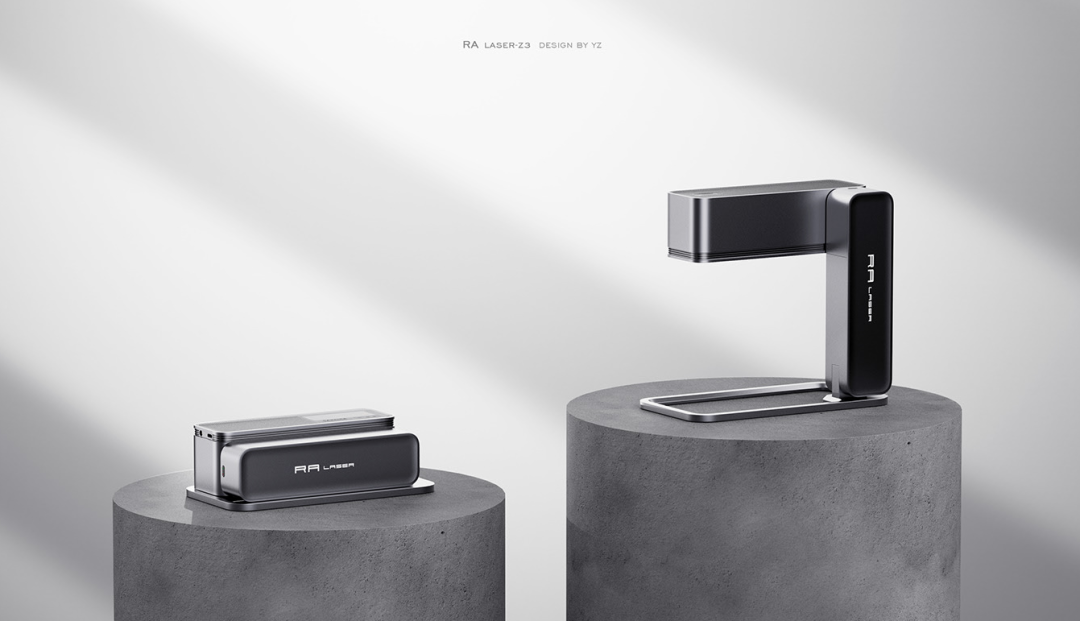 RA LASER Z3 是一款便携式激光雕刻产品,RA Z3不受物品体积,雕刻面积,使用空间等因素的限制:紧凑极致的内部堆叠结构设计;更小的体积,折叠后只有一本书大小;转轴角度限位让增加RA Z3的耐久度;APP 蓝牙连接,内置多种预设可供用户选择,可以DIY打印内容;开放式底座设计,配有自动对焦自动升降,让RA Z3可以兼容不同尺寸体积的雕刻物体;保护外罩,阻挡激光对人眼的伤害。