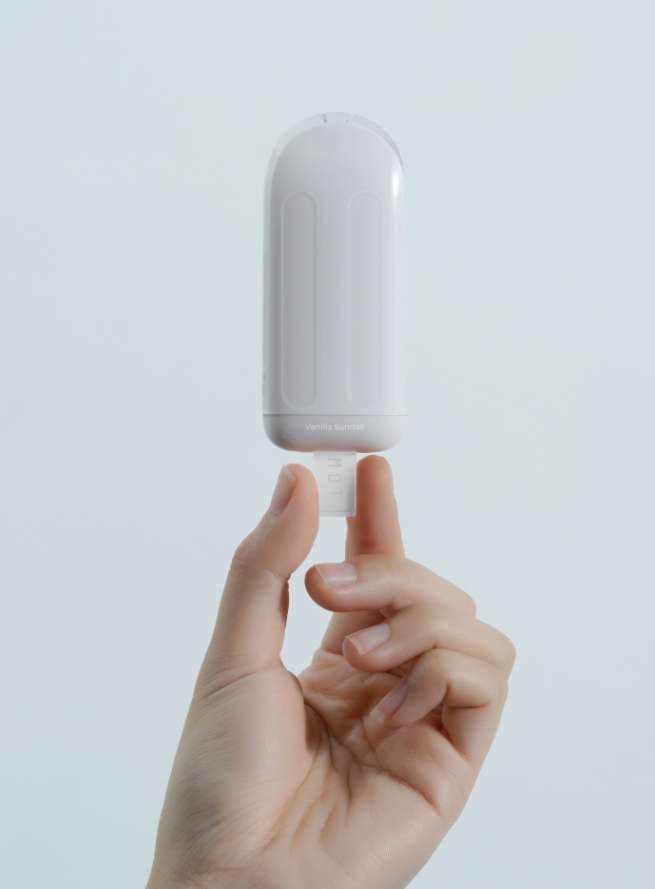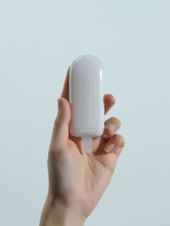 这是一款一次性电子烟产品。灵感来源于冰棍,MOTI希望产品能够持续为用户带来惊喜。为了获得更舒适的体验,多次的调整使得吸嘴位置能够让嘴唇完美贴合。圆润的形态搭配光滑的表面使得手感更加舒适,表面微微起伏提供了富有层次的触觉体验。