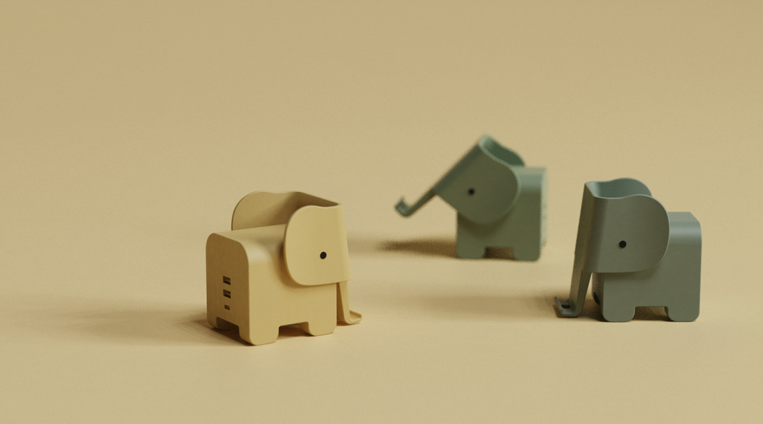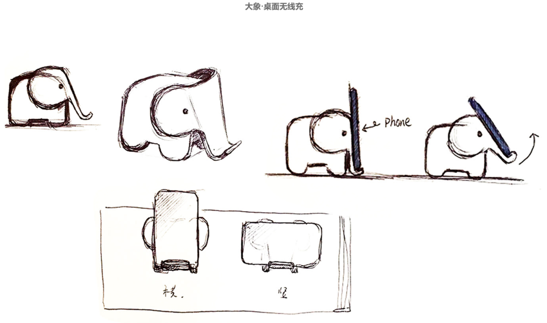 大象形状的桌面无线充电器,仿生设计非常可爱,大象形象十分萌趣。设计也非常巧妙,充电的同时也能当作手机支架使用,大象头部角度可调节,功能性和颜值并存。
