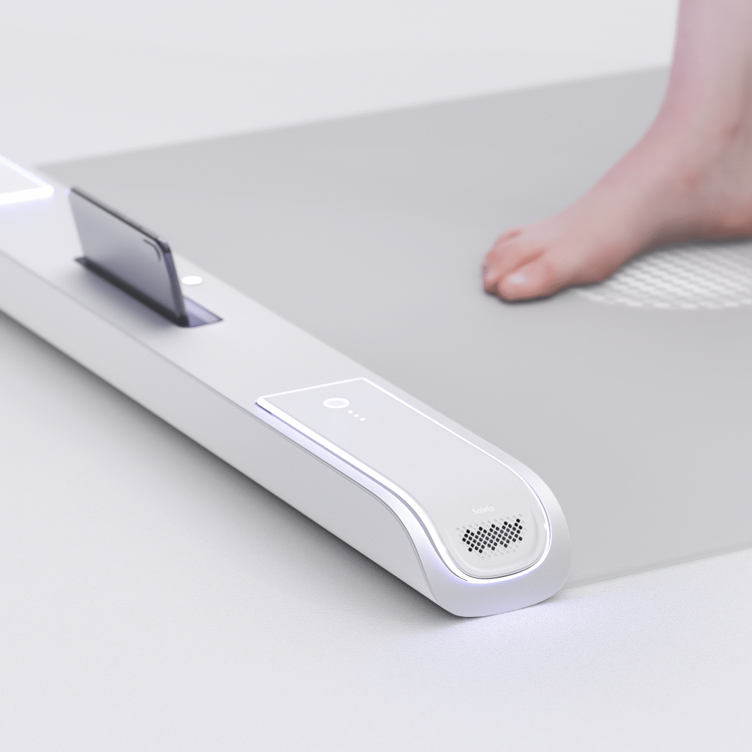 借助杆上的激光雷达传感器摄像头,Solelp 可以扫描用户姿势的准确性并给出反馈,让用户享受互动拉伸的乐趣。扬声器位于边缘,用户可以在游戏过程中欣赏音乐并接收声音反馈。手柄可分离,尺寸易于抓握,质地光滑。手柄还可用于使用带子进行伸展,并且分析姿势提供反馈。