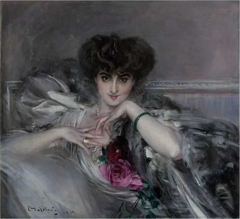 乔瓦尼·波尔蒂尼 (GiovanniBoldini,1842-1931)出生于意大利,青年时期前往佛罗伦萨学习美术,1872年他在法国🇫🇷巴黎定居,很快成为当时最受欢迎的肖像画家之一,上流社会的名媛争相委托 Boldini 为自己画像。