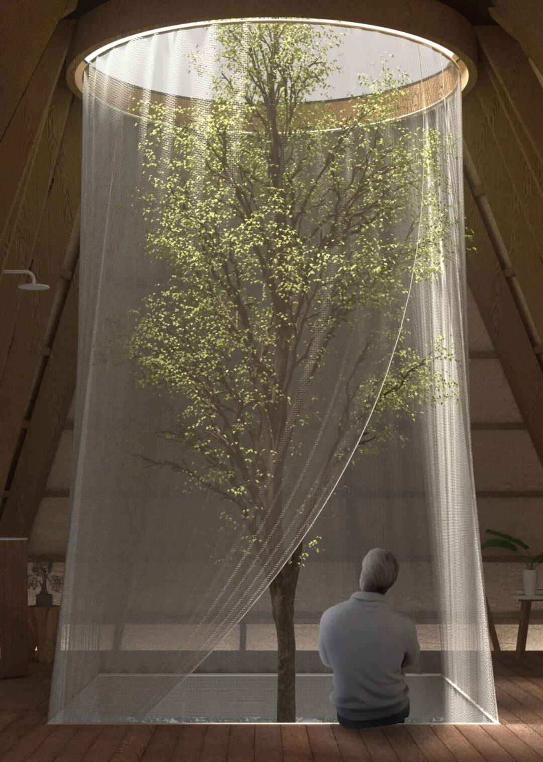 现在,“Outside”的自然和“In”的生活之间的普遍关系现在被颠倒了。新的隐蔽小屋提醒我们,所有的生命形式都在呼吸,并从我们对自然的关爱开始。