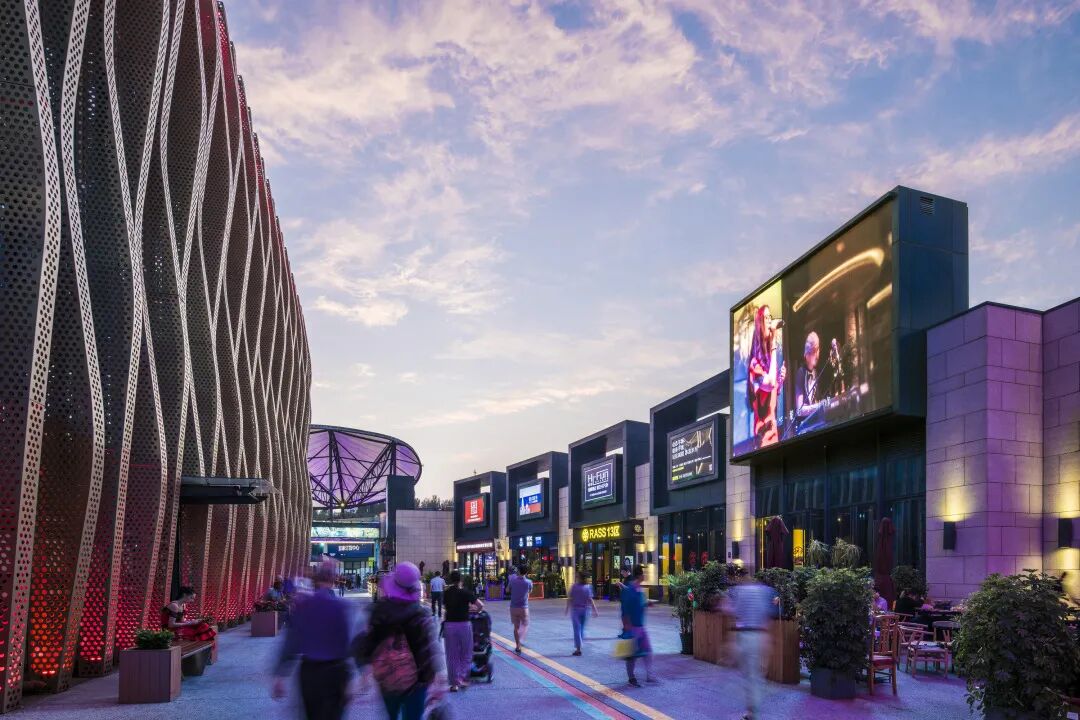 北京华熙Live集文化传播、购物体验及时尚运动为一体,是辐射到北京市西区及周边的城市级体验式商业中心。“运动”这一元素作为建筑语汇贯穿各部分设计中,零售建筑与公园景观、中心广场与室外商业街构成完整的环形动线,在视线和可达性上力求最优。广场景观不仅延伸了现有绿化设施基础,更是为社区居民提供了一个可举办各种演出、聚会、滑板、攀岩等丰富多样户外活动的潮流圣地。
