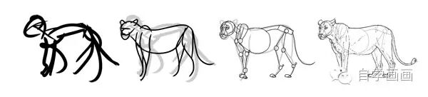 每一个动物都会有节奏性地表现出其身体姿势。这种所谓的节奏很快也很简单,不过用这种方法是无法完成一幅完整的图的。使用方法如下:
