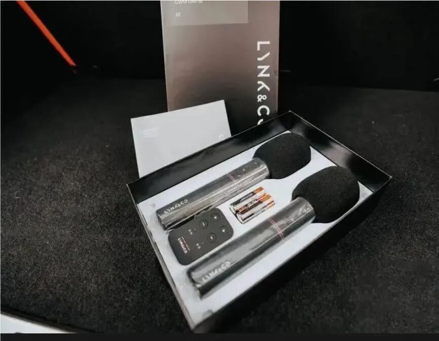 领克09EM-P除了后排带有2块娱乐屏,支持对外供电以及空间大到可以休息以外,它还推出了各种精美的周边,比如车载麦克风,车家两用的迷你冰箱。