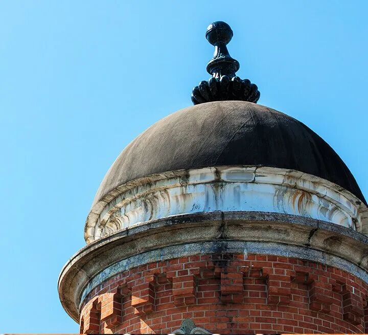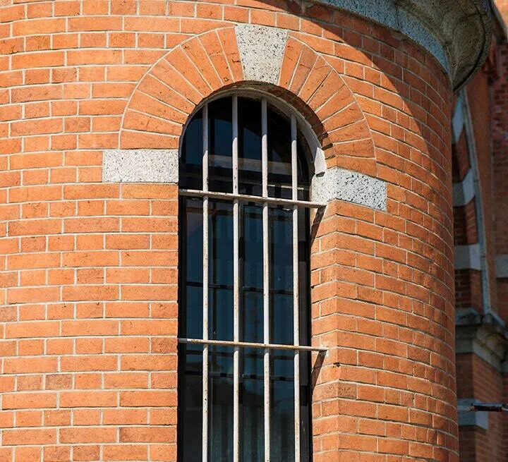 每个圆柱形塔楼都有一个独特的圆顶形屋顶,圆顶形屋顶用砂浆覆盖,防止风雨侵蚀,上部装饰典雅。圆塔内有楼梯,通向正门内的二楼。安装在窗户上的铁条与施工时相同。