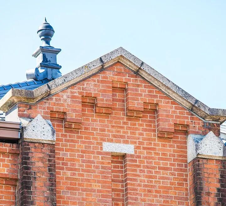 建筑的窗户普遍高大,半圆形拱形窗和梳形窗对称排列,上部具有将楔形砖布置成拱形来承受载荷的结构。