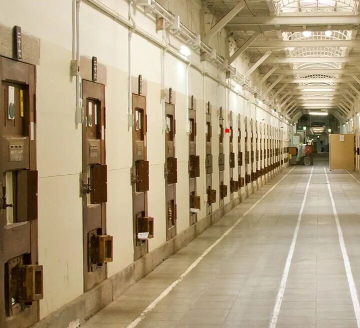 内部空间与承载百年历史的华丽外墙画风完全不同,里面是气氛窒息的极冷环境,狭小的单人间隐藏在无法从里面打开的厚重大门后不见天日,此外设置的禁闭病房围成一圈,守卫可以从看守所监视所有五个病房。