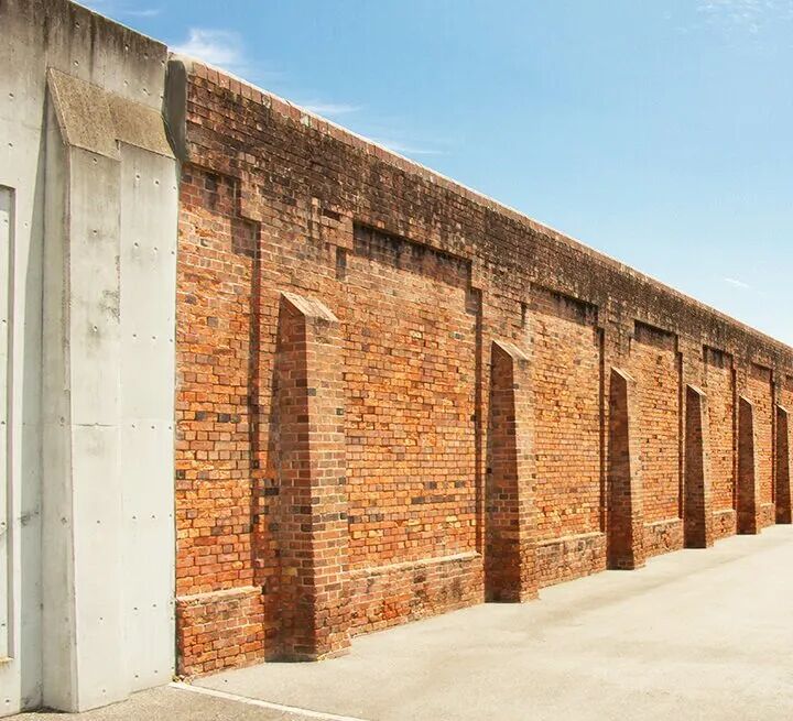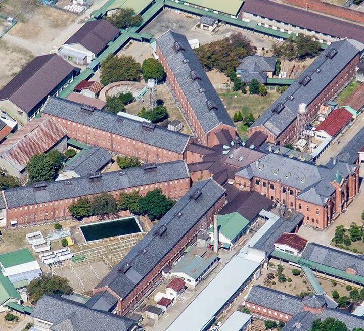 奈良监狱由法务省公务员山下庆次郎设计,他设计了世界各地的许多监狱和法院,大部分建筑工作是由囚犯完成的,所用的砖块也来自他们自己建造的窑炉。罗马式红砖建筑体量由五座从中心呈放射状延伸的细长建筑组成,警卫可以随时监督所有走廊动向,俯瞰的形状像一个伸出手指的手掌。